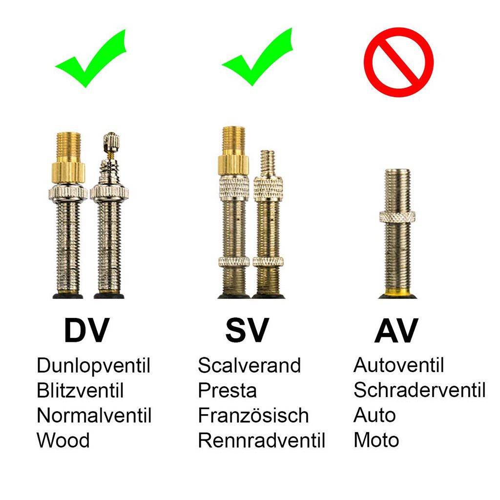 Dunlop valves (DV), known as standard valves / express valves (BV),