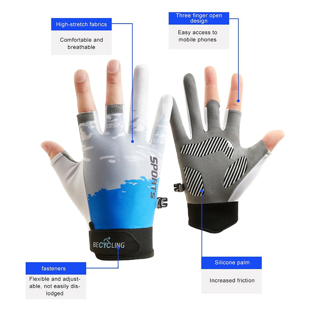 1 Pair Summer Men Women Fishing Gloves 3 Finger Breathable