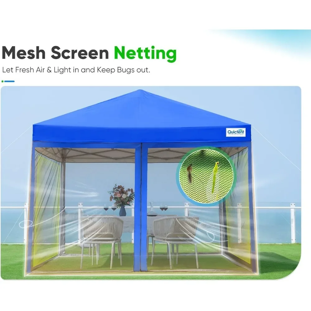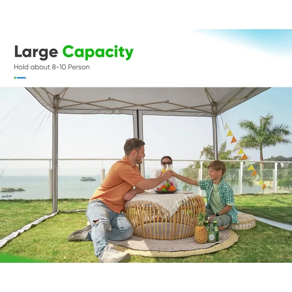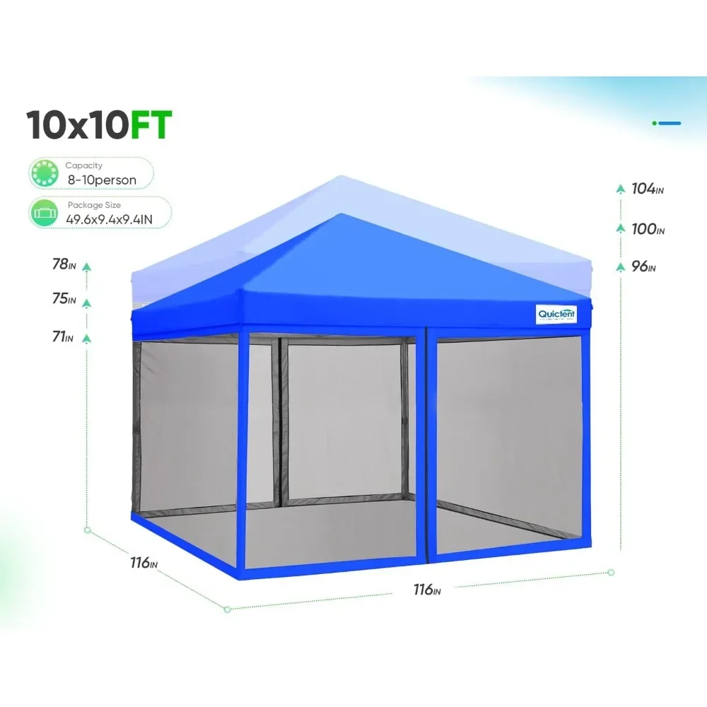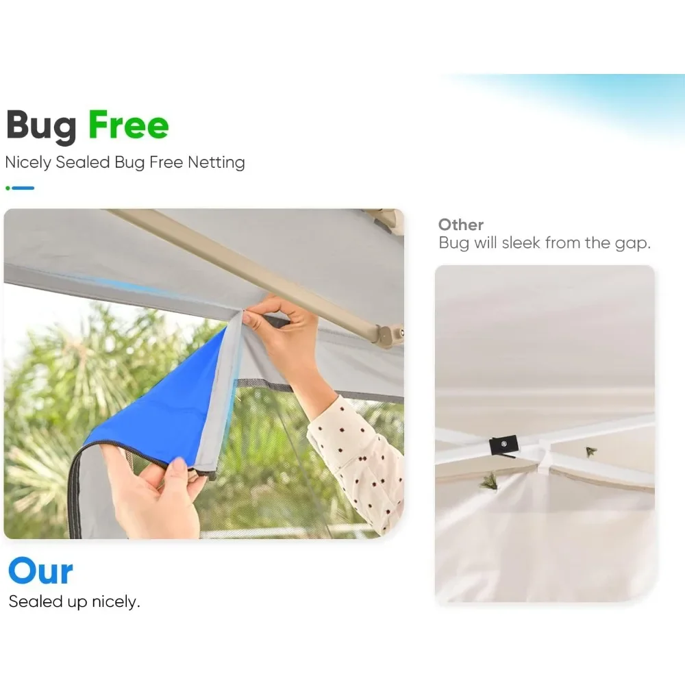 - ✅[NICELY SEALED NETTING]: The 10x10 pop up canopy with 360 degree velcro strap sewn along the cover and sidewalls fully sealed to keep unwanted elements away.There're also no gaps between the sidewalls,as the screened canopy tent comes with 2 pieces of mesh sidewalls which covers four sides and connects with zippers.
