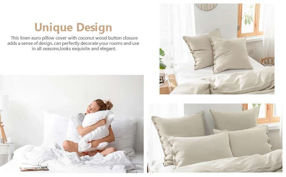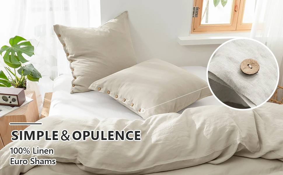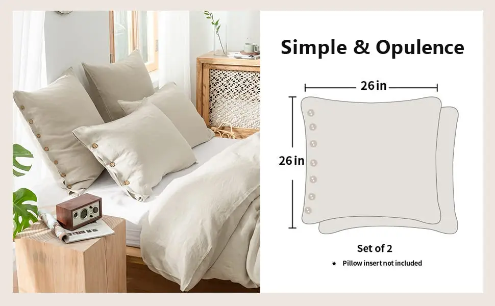 100% Linen【Park of 2 Euro Sham Covers】Size:26 x 26 Inch (66x66cm),set of 2.Note:Pillow insert /cushion is not included.
