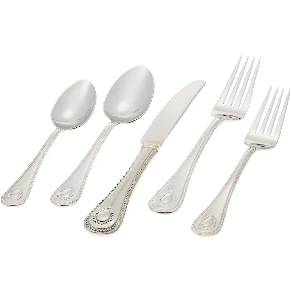 - Includes 12 each of salad forks, dinner forks, dinner knives, tablespoons, and teaspoons.