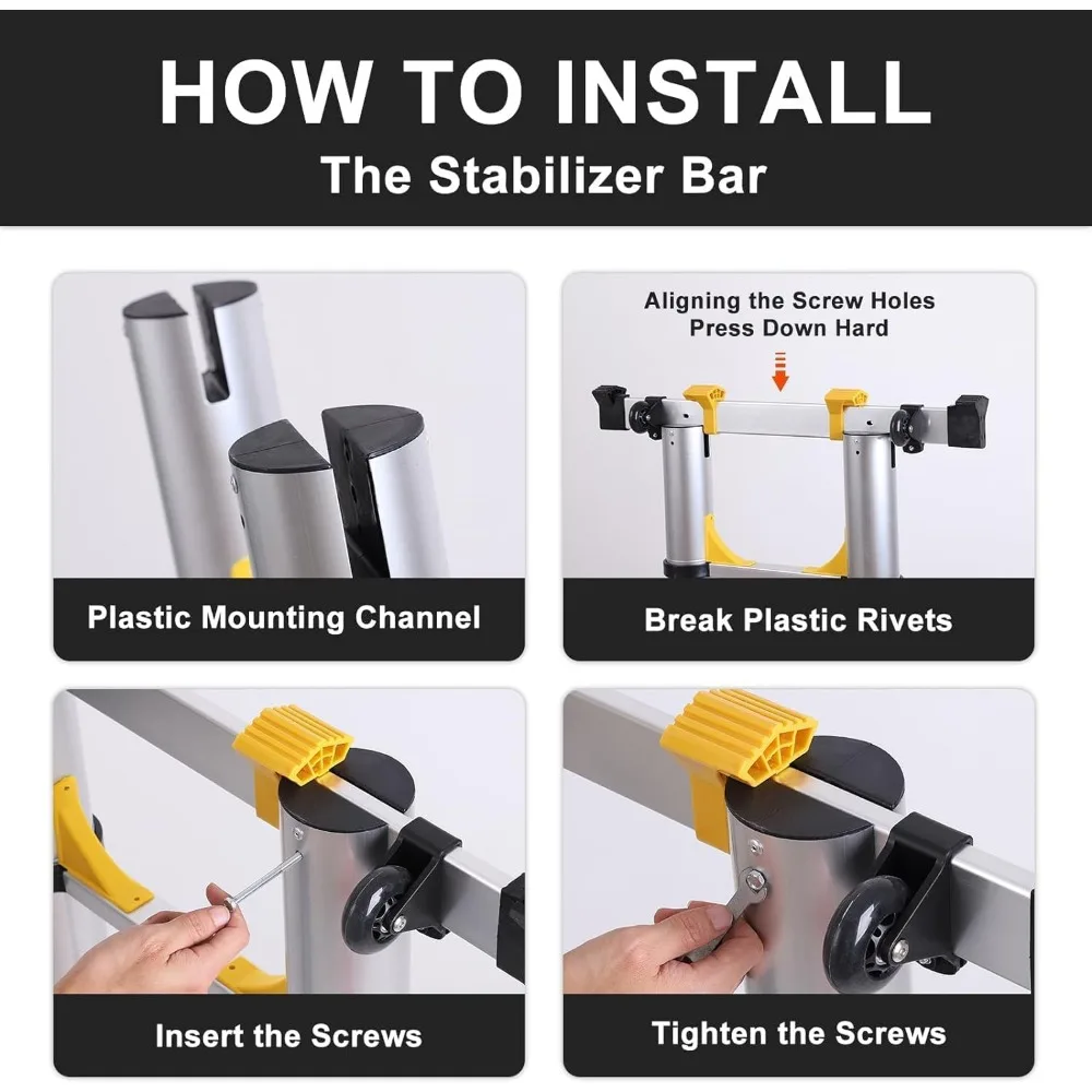 The Stabilizer Bar: It makes the ladder more stable during your use. It stops the ladder from tilting to the sides while increasing the contact point with the ground, making the ladder more stable.