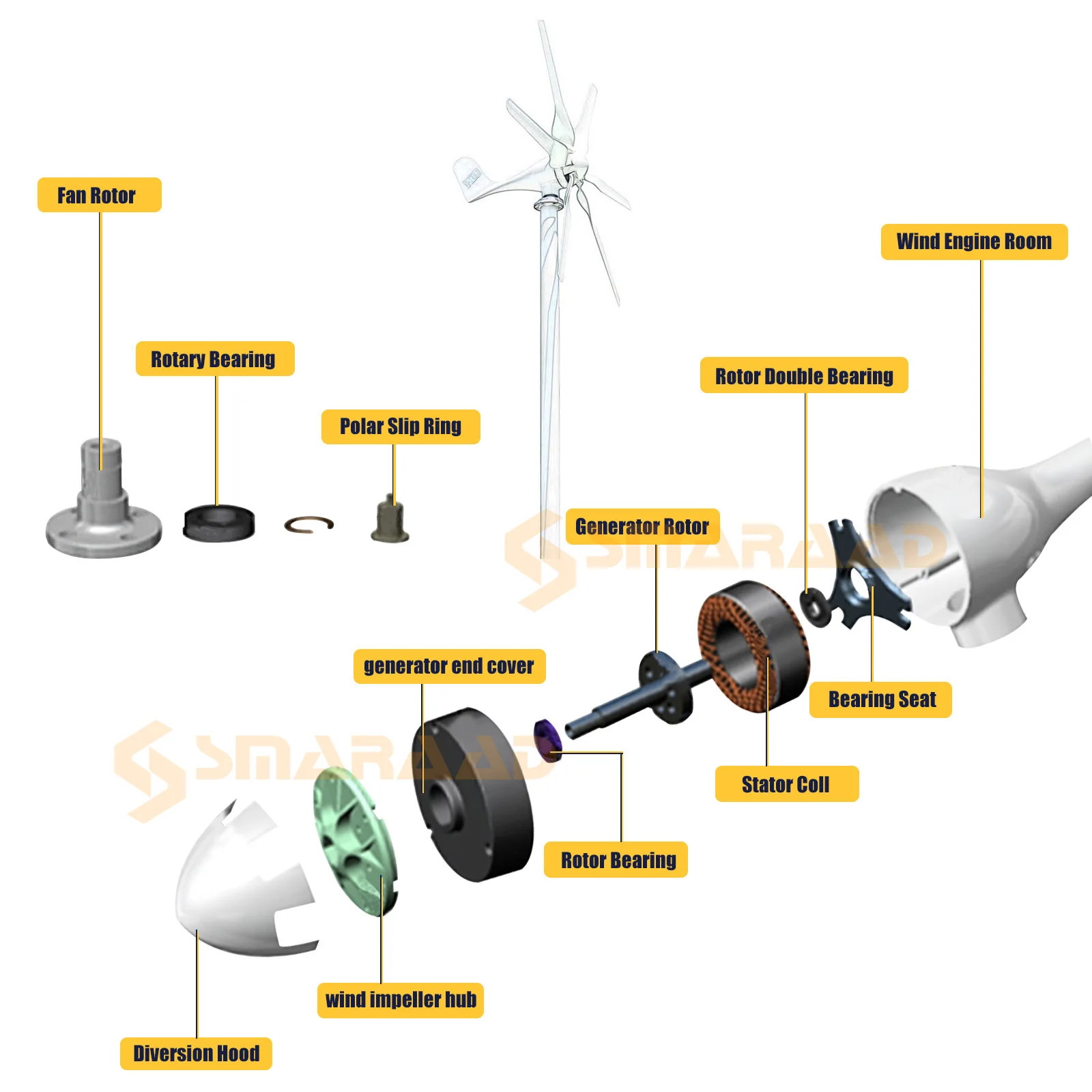 1kw 1000w Horizontal Strong Wind Turbine Generator 48V 24V 12V