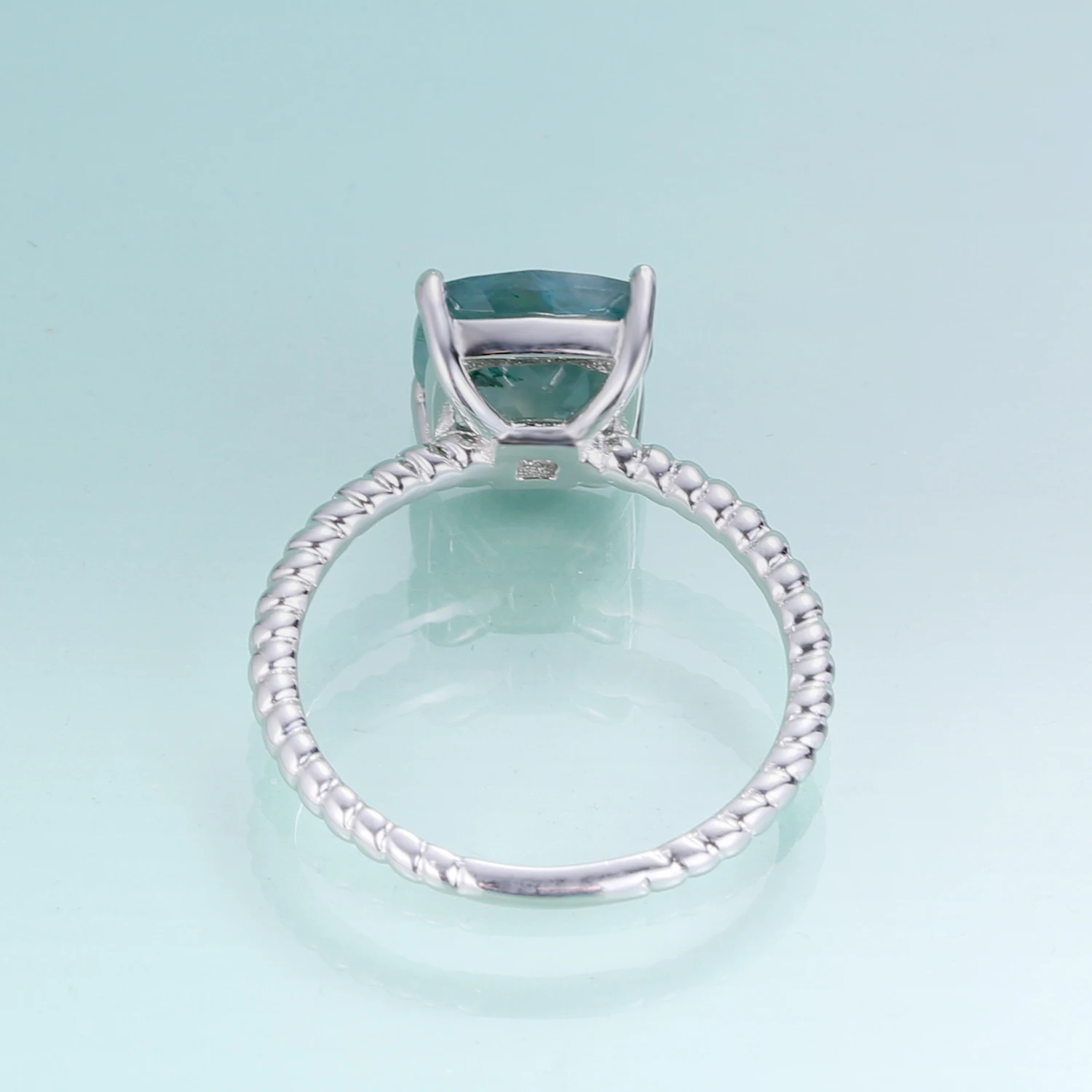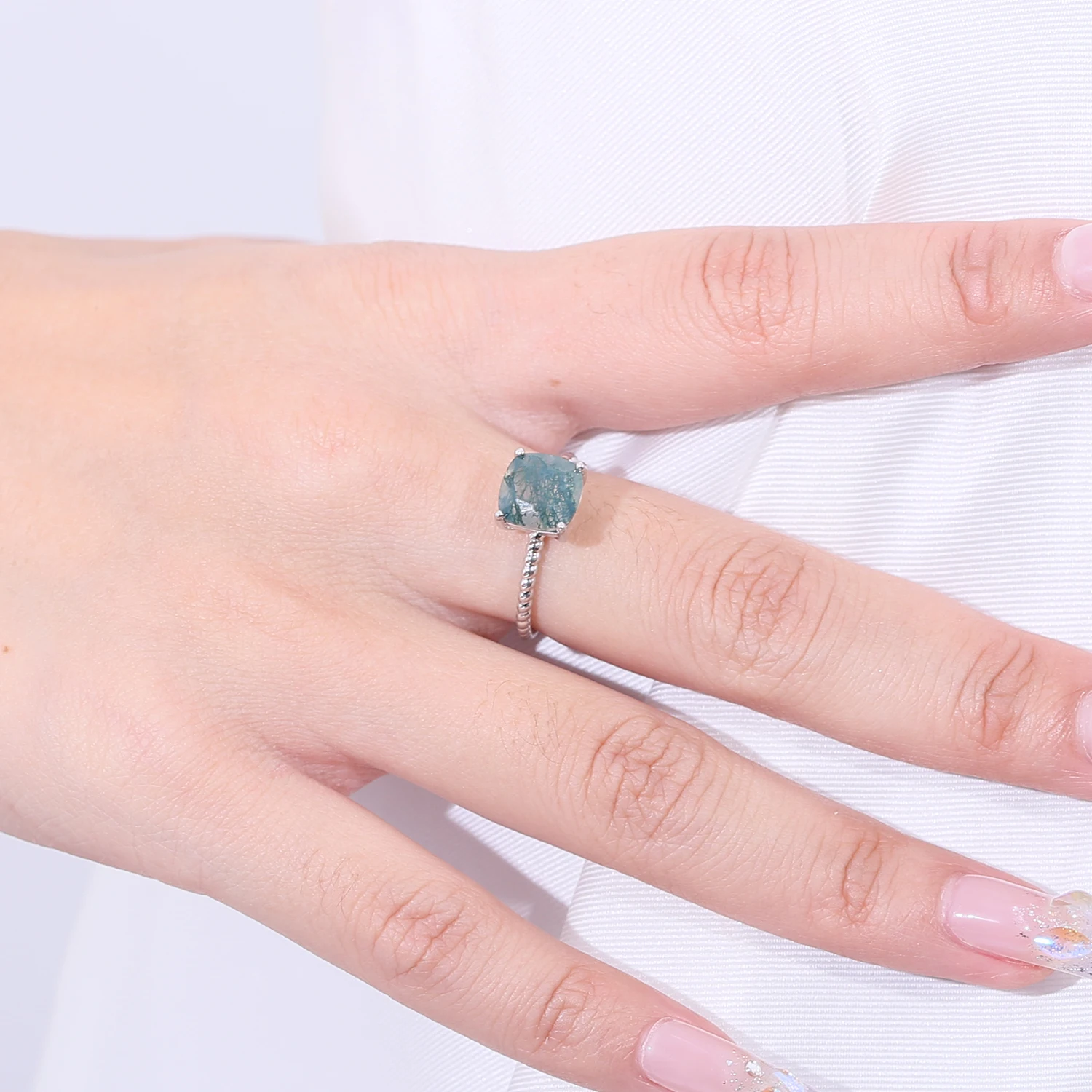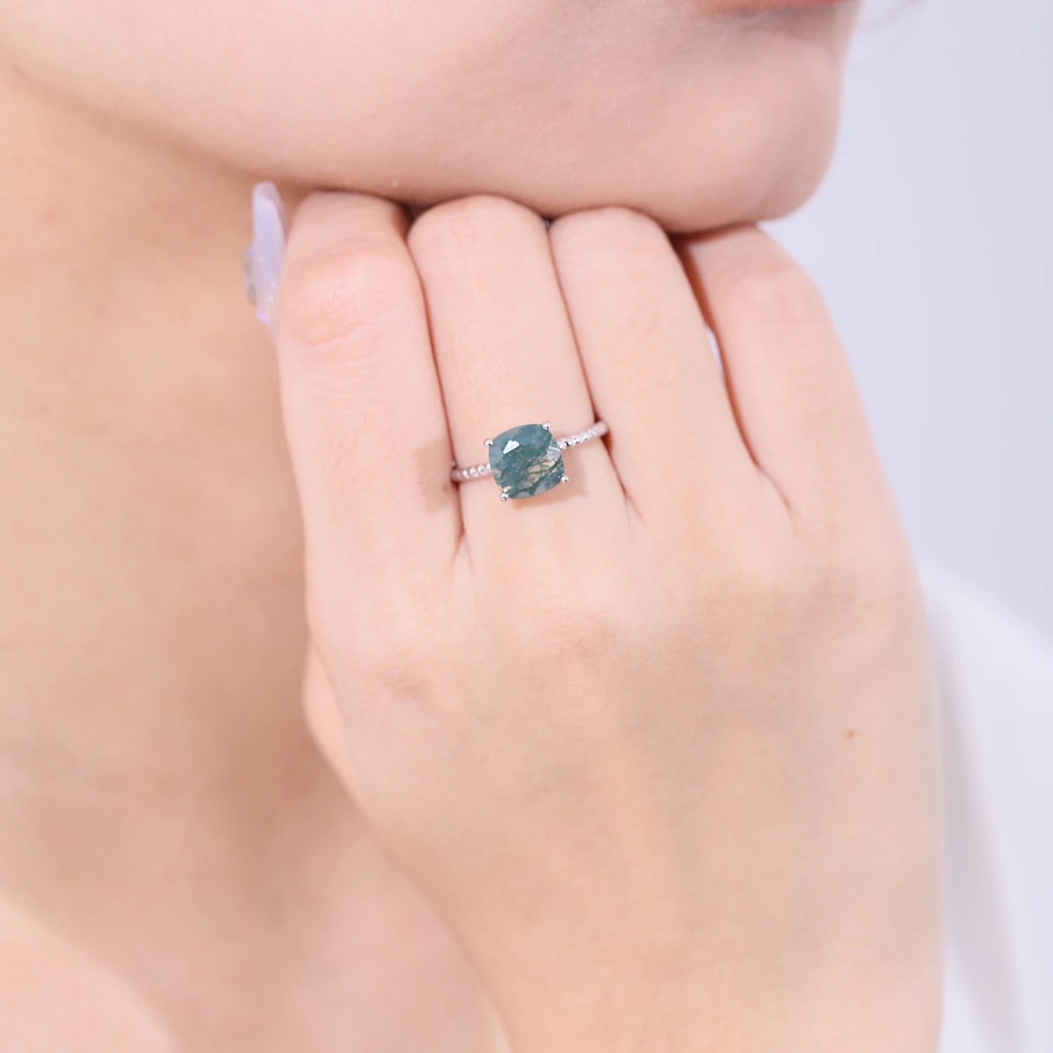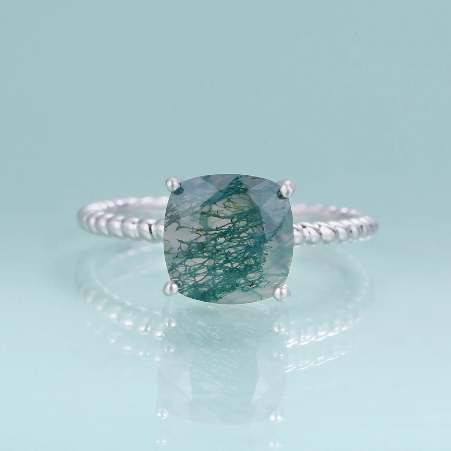 2.25Ct 8x8mm Cushion Moss Agate Gemstone Rings Sterling Silver
