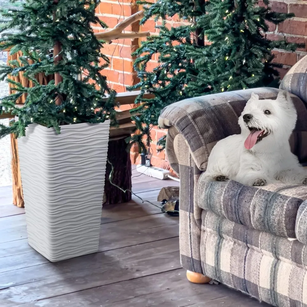 2-Pack Tapered Planter Plastic White Square Plant Pots 22"