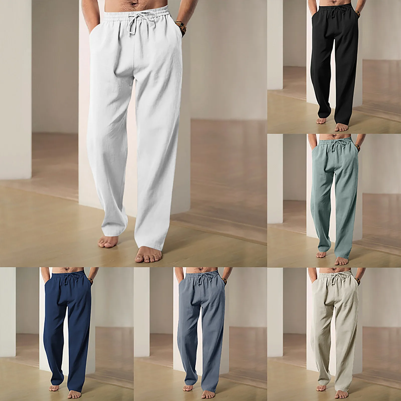 2024 Men's Cotton Linen Pants Male Casual Pants S