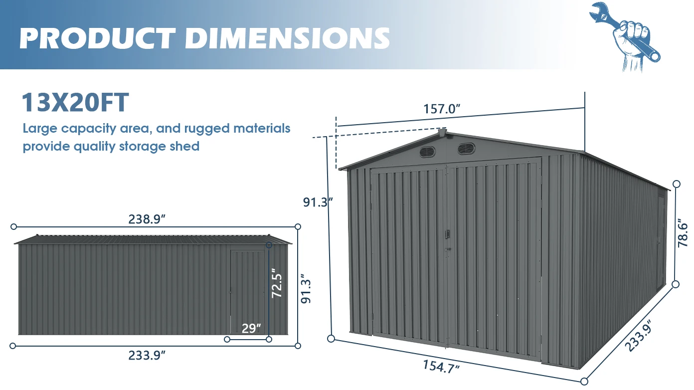 20x13 FT Storage Shed,Metal Garden Shed Backyard