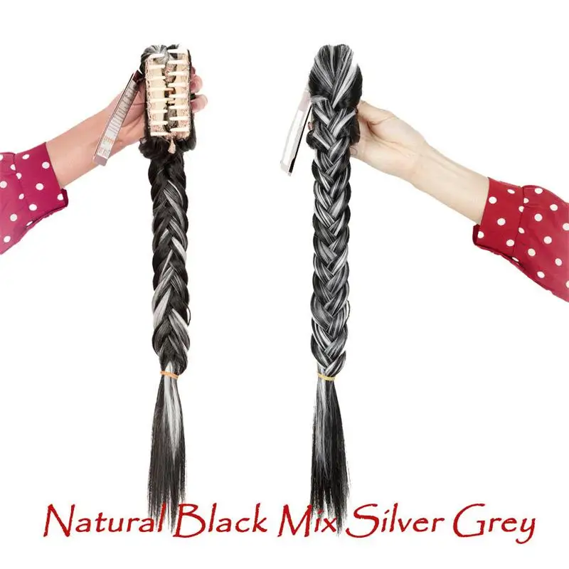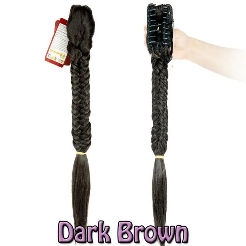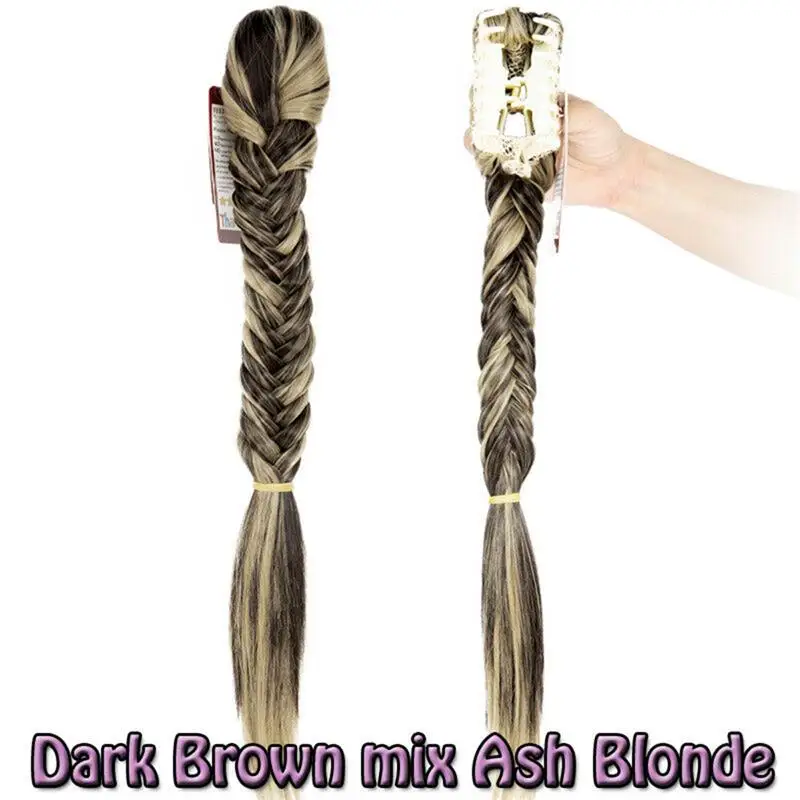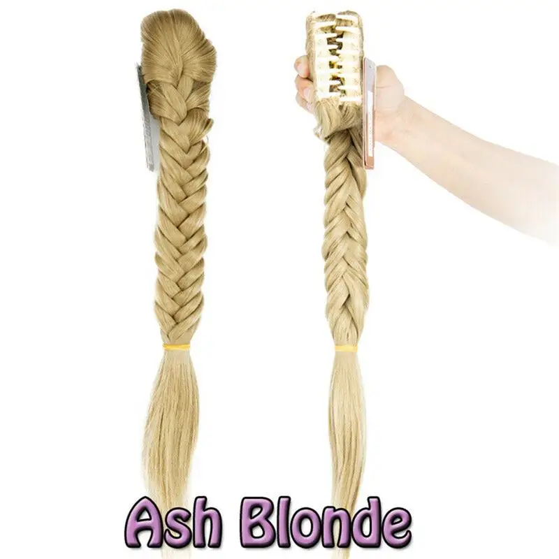 22 Inch Hair Long Straight Ponytail Clip In Braided Fishtail
