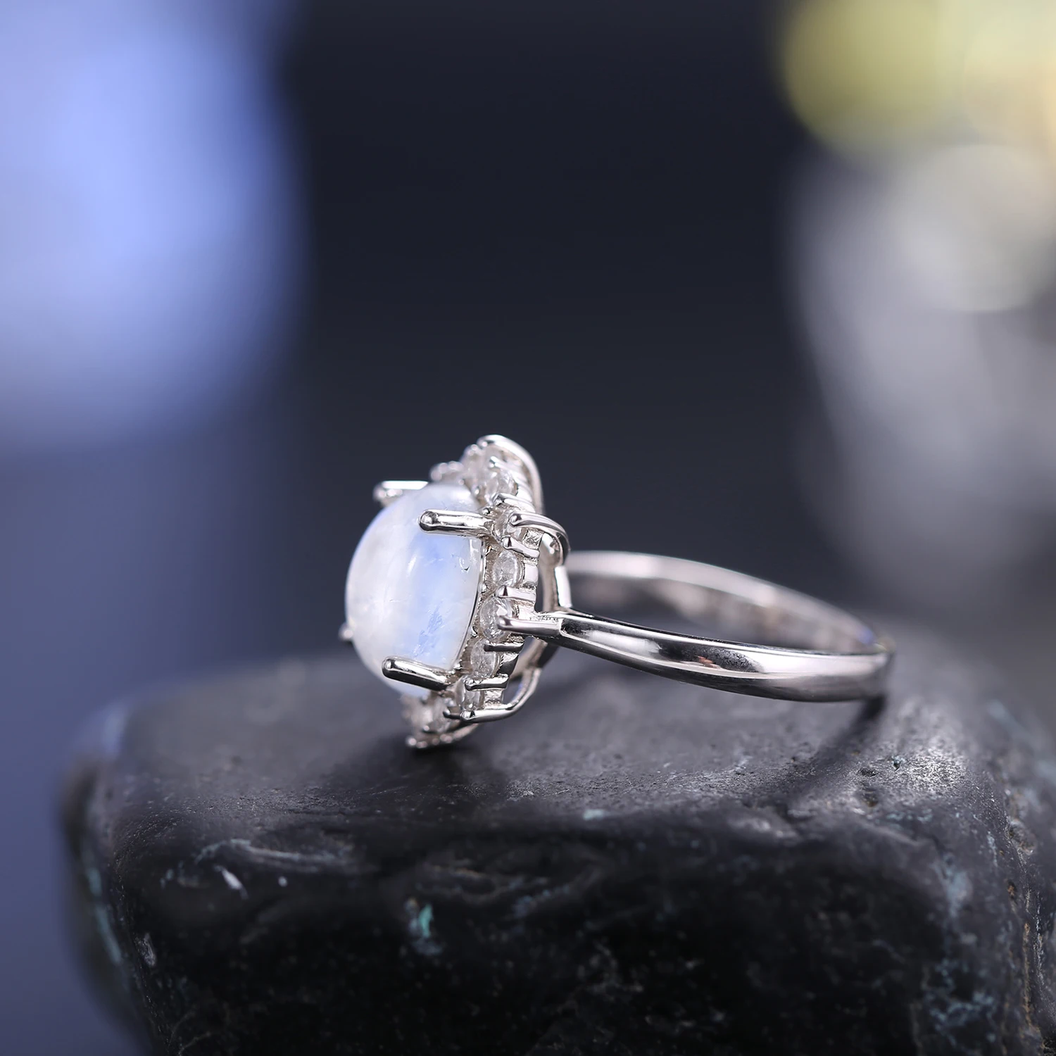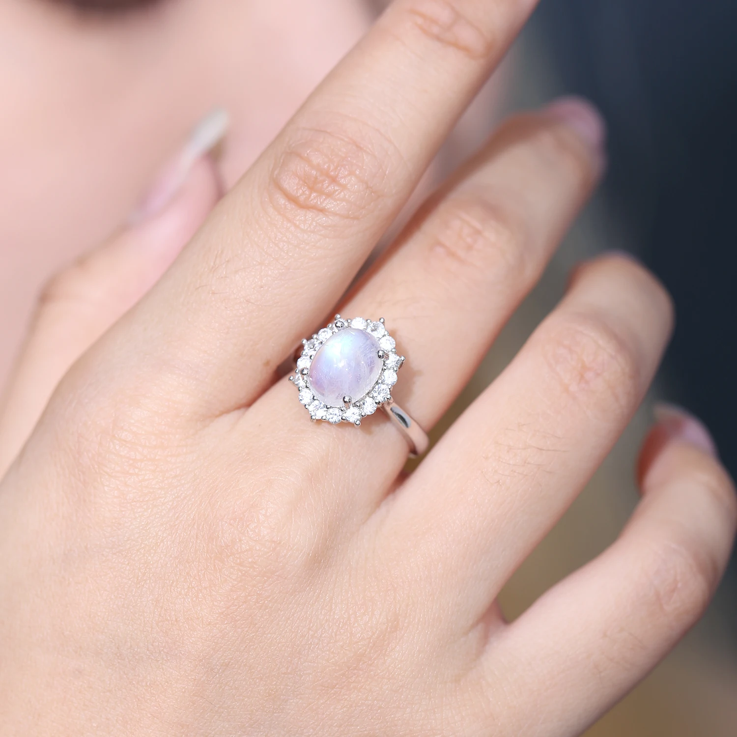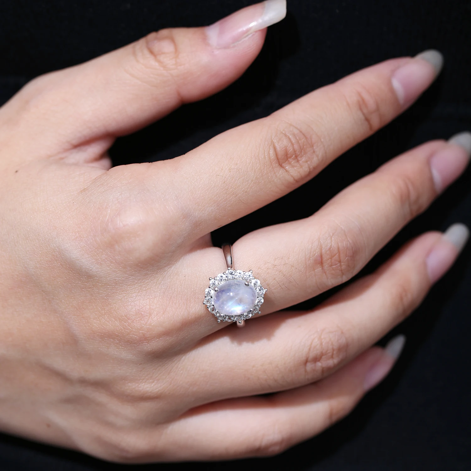 3.24CT Oval Cut Moonstone Unique Cluster Halo Rings Sterling Silver