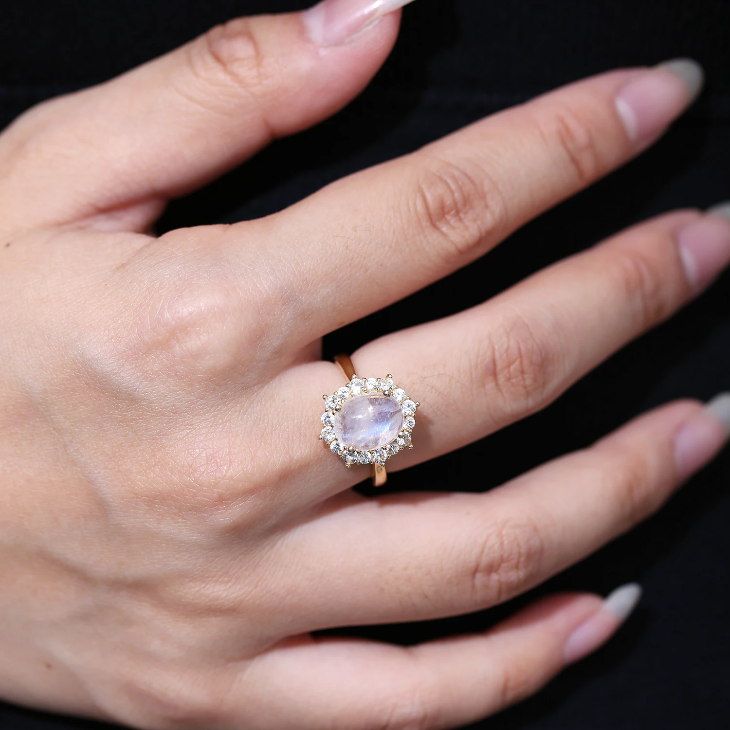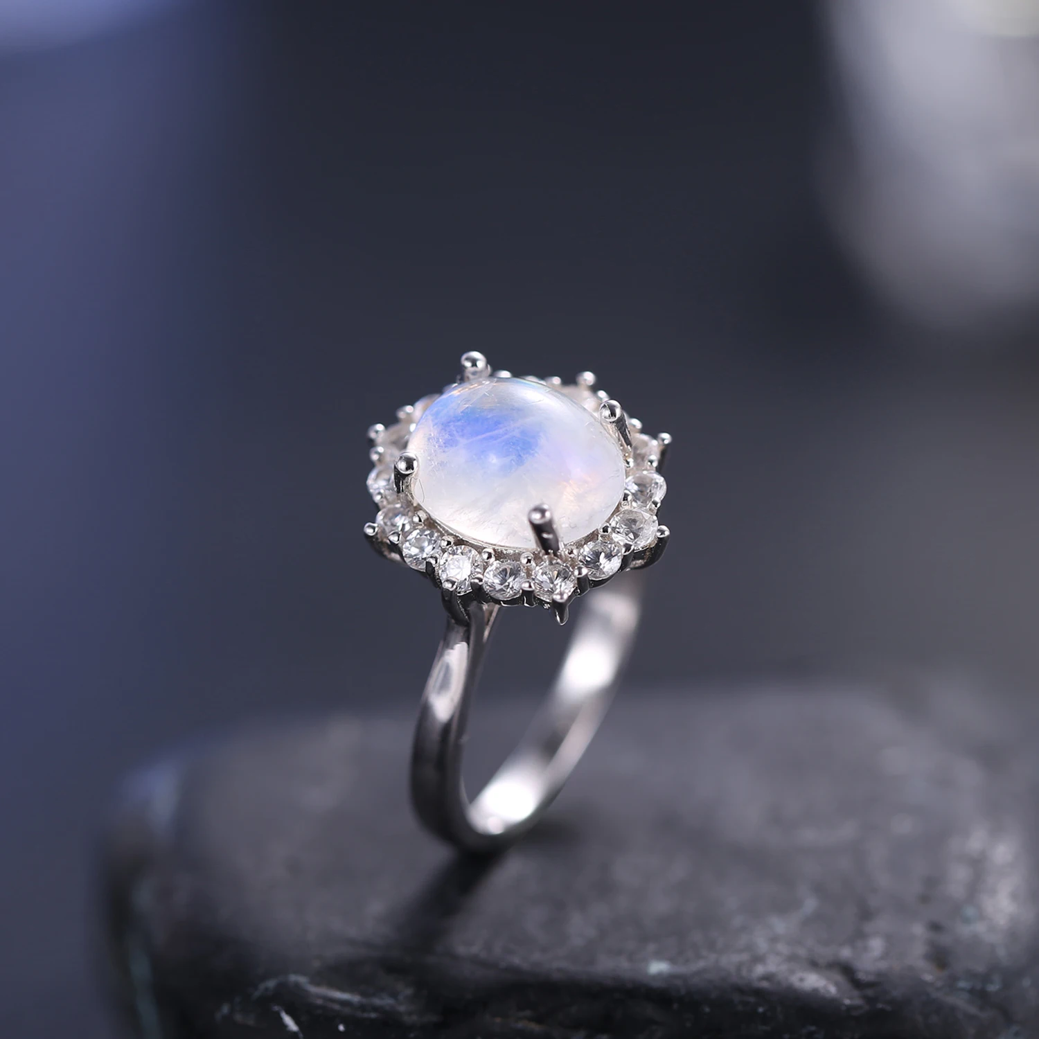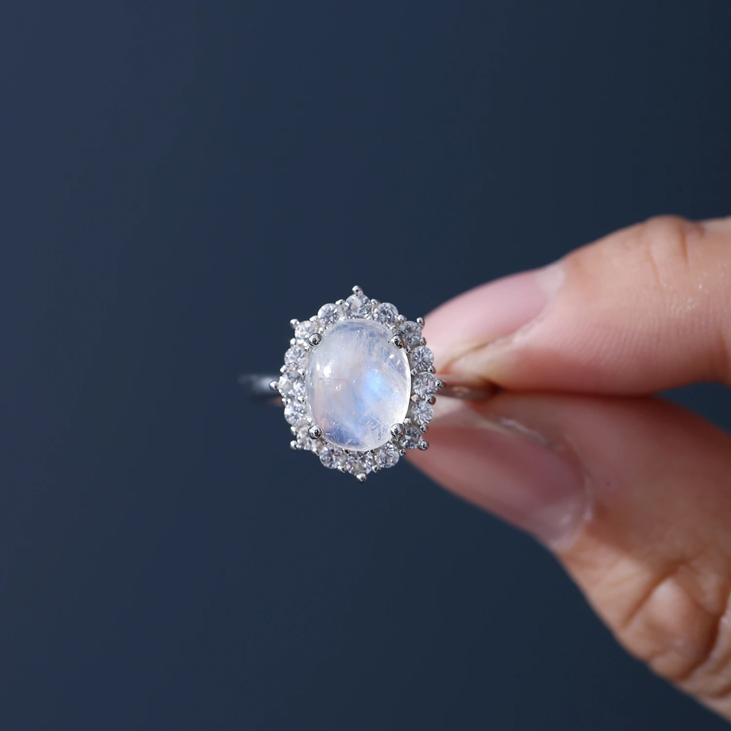 3.24CT Oval Cut Moonstone Unique Cluster Halo Rings Sterling Silver