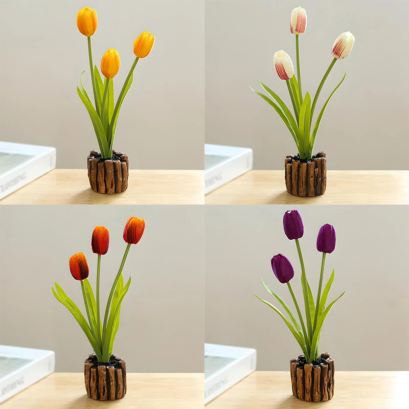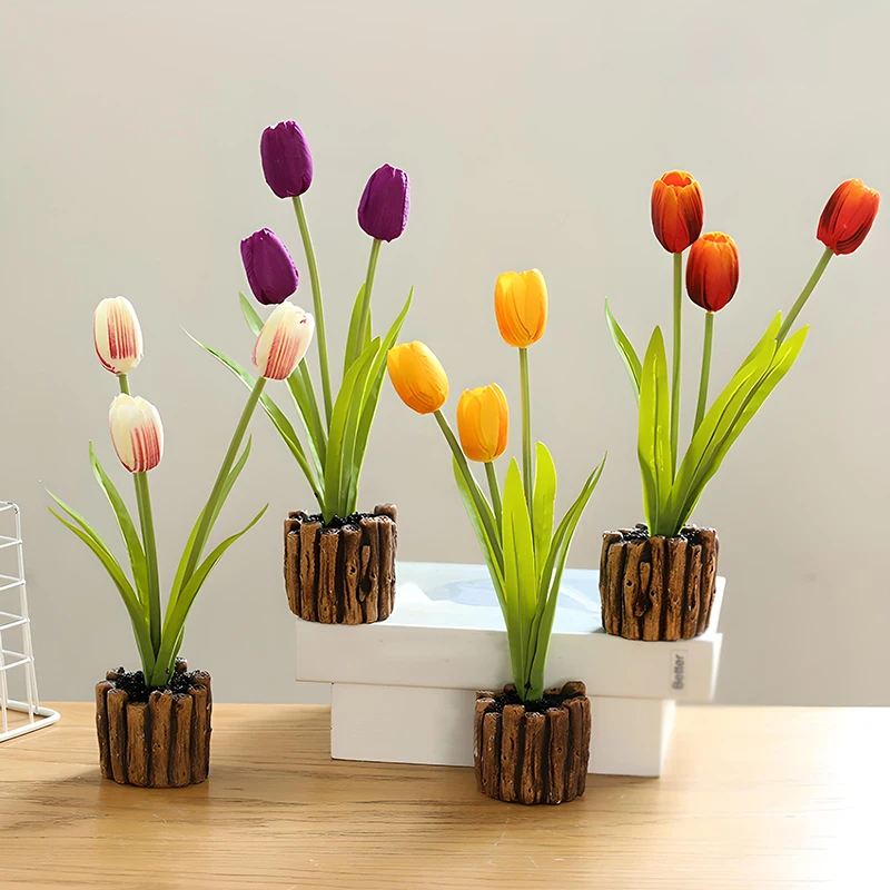 3-Headed Tulip Real Touch Artificial Flower Silicone