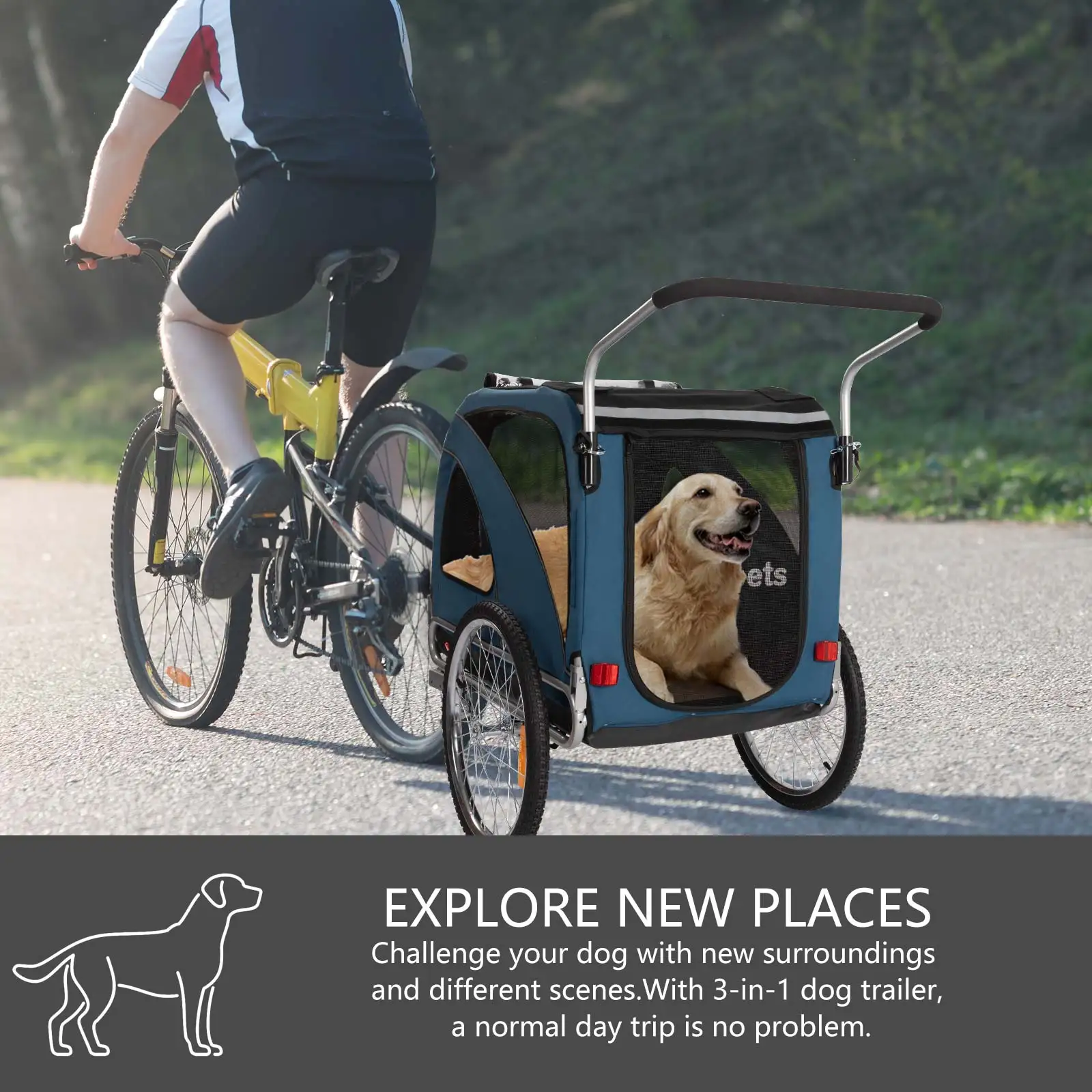 3 in1 Large Pet Bicycle Trailer Foldable Pet Cart Dog Bike