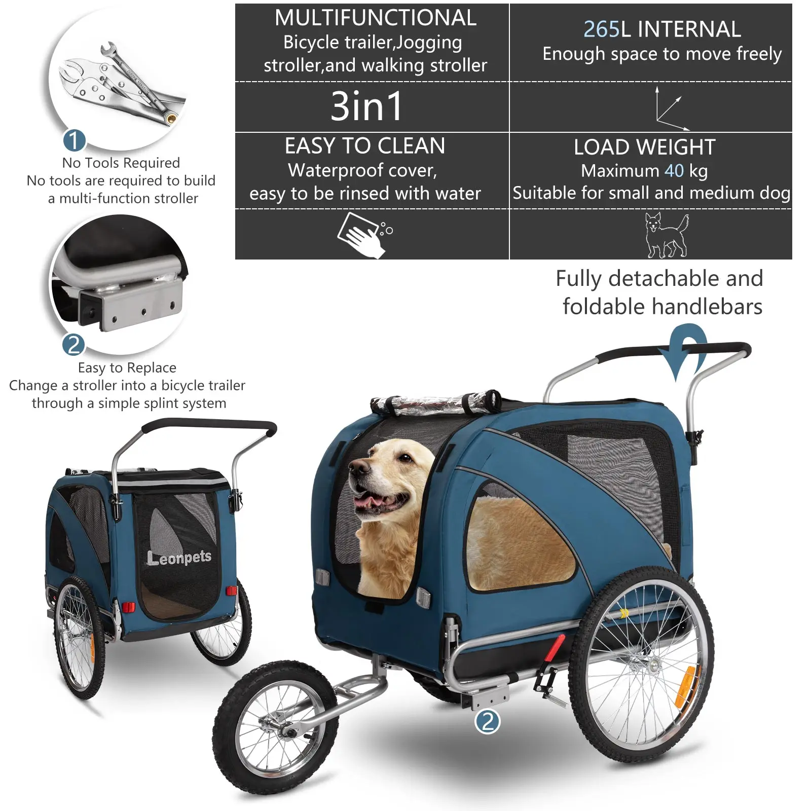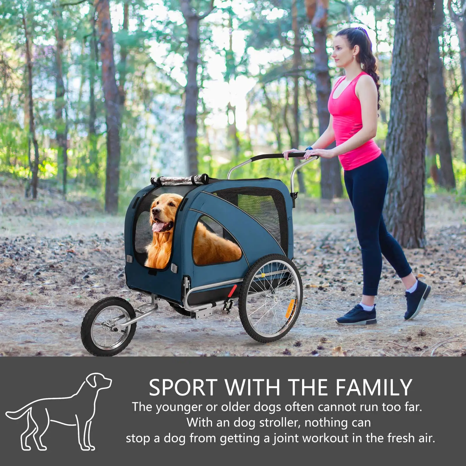 3 in 1 Large Pet Bicycle Trailer Foldable Pet Cart Dog Bike Trailer with a 12 inch Jogger Wheel and a 6" Swivel Stroller Wheel