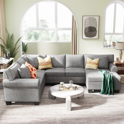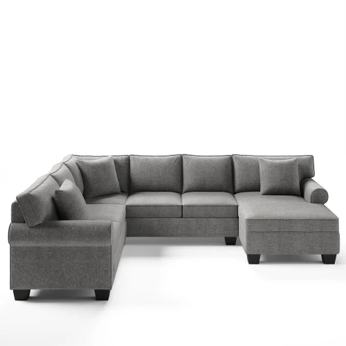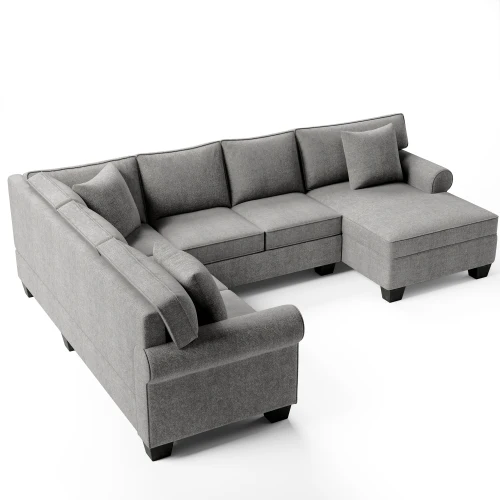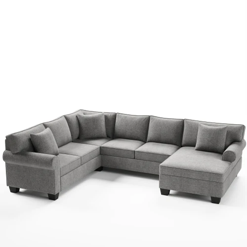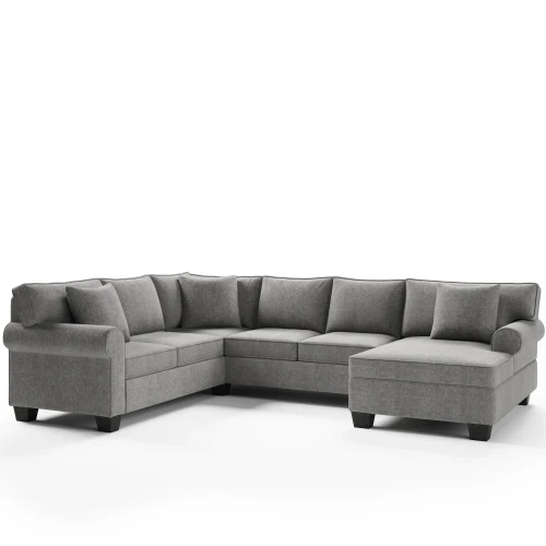 3 pcs Chenille Sectional Sofa Upholstered Sectional Sofa 3 Pillows