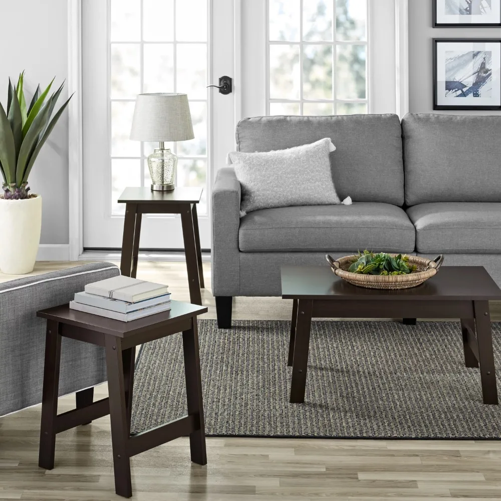 3 Piece Coffee Table and End Set, Espresso Finish Modern Accent