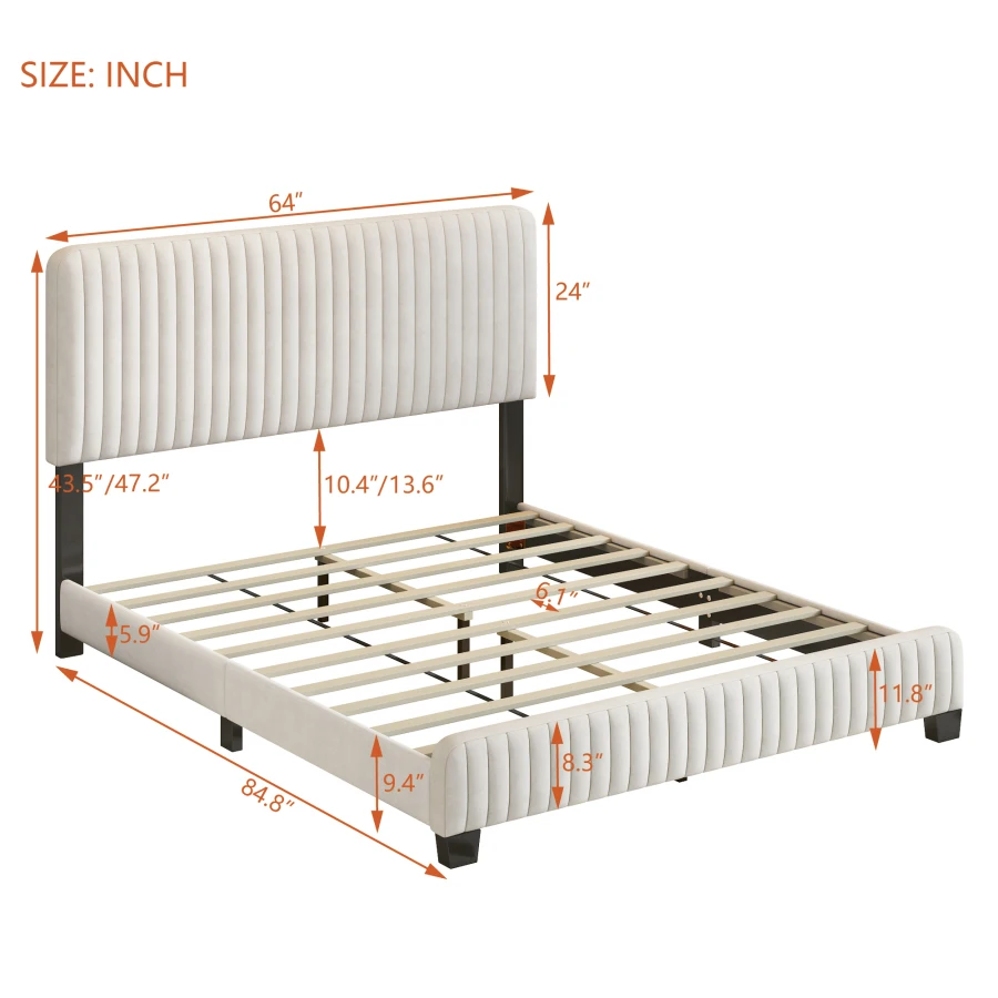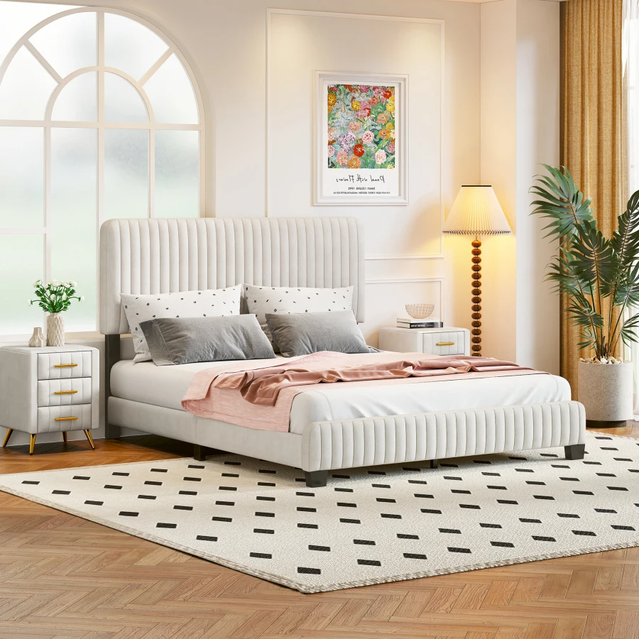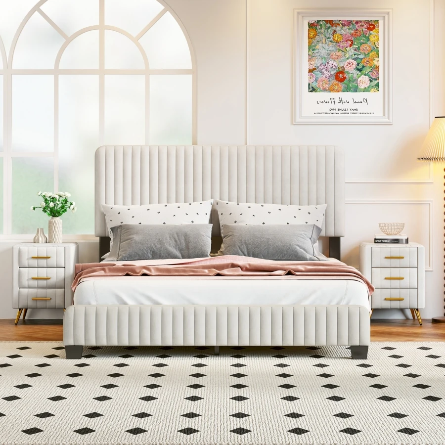 3-Pieces Bedroom Sets,Queen Size Velvet Upholstered
