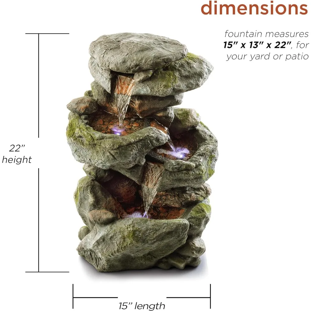 3-Tiered Rock Waterfall Fountain LED, 22", Gray