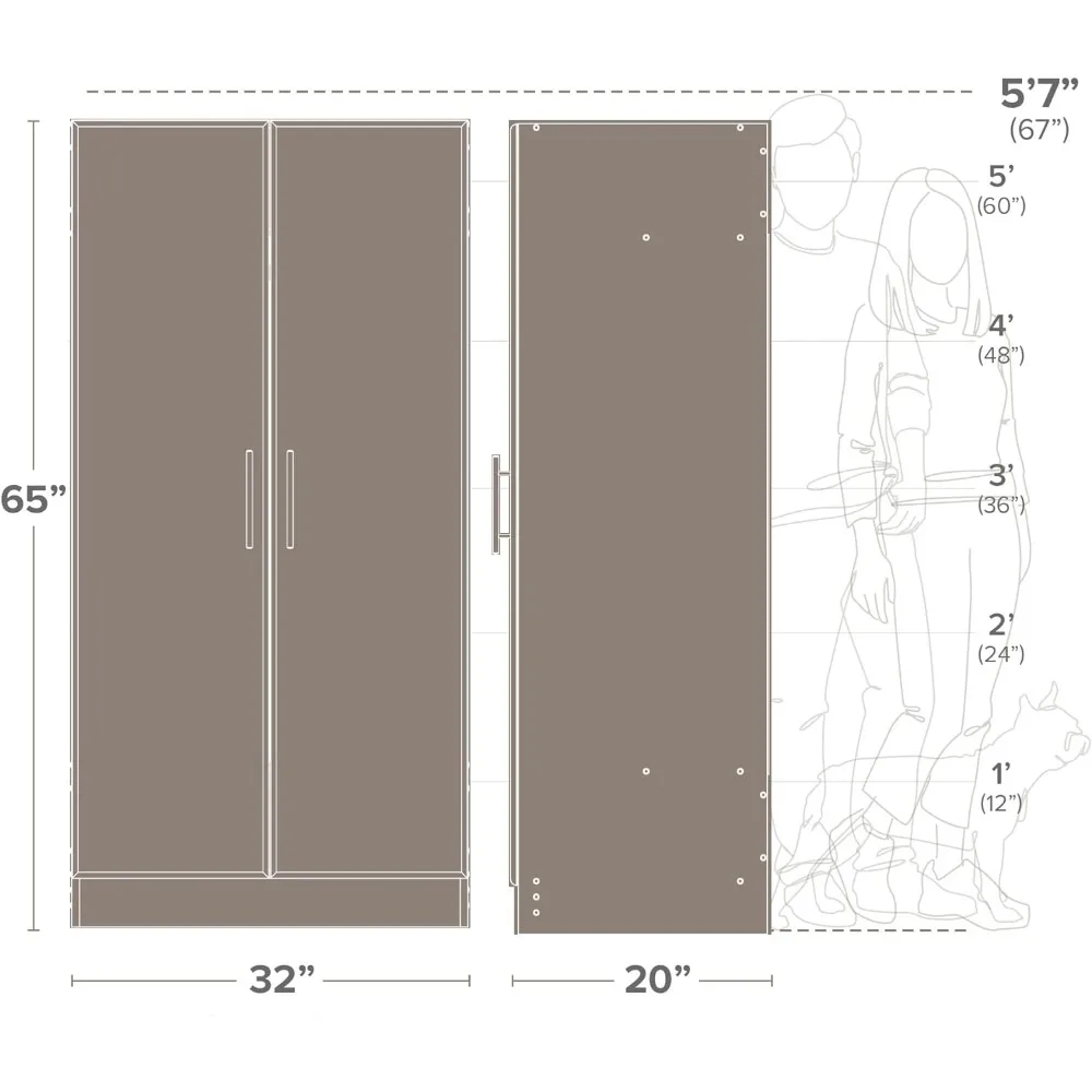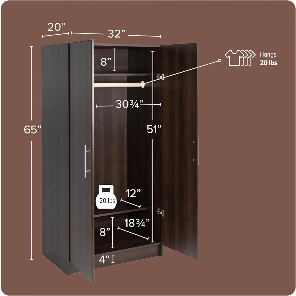 32" Storage Cabinet Closet, Brown Storage Cabinet