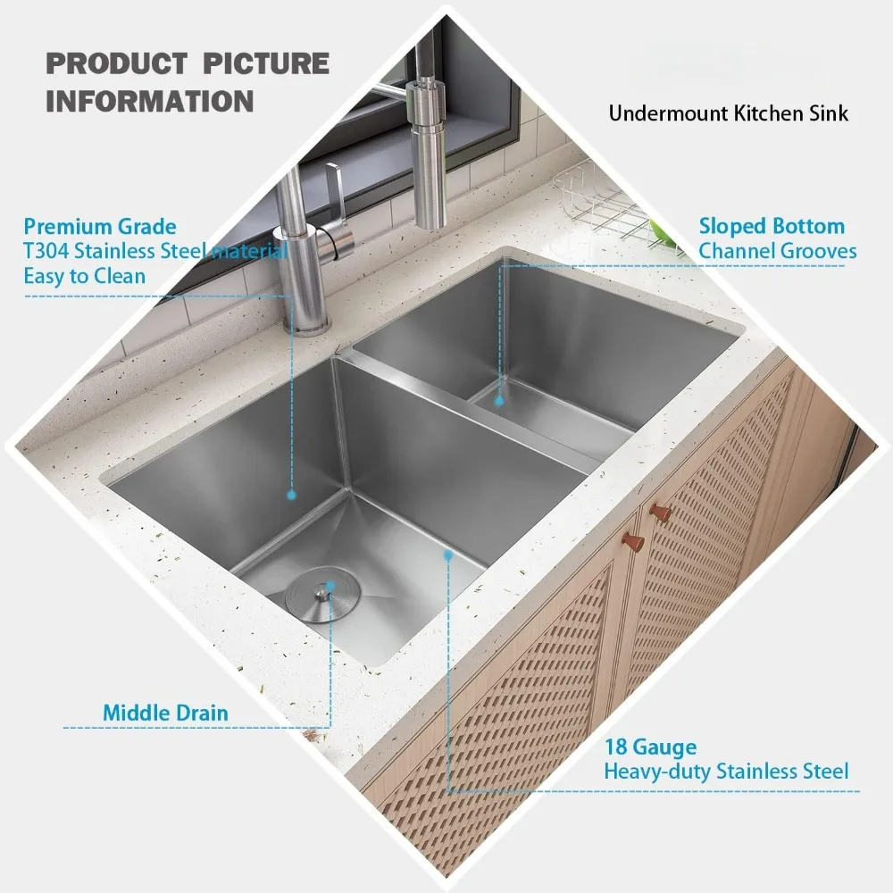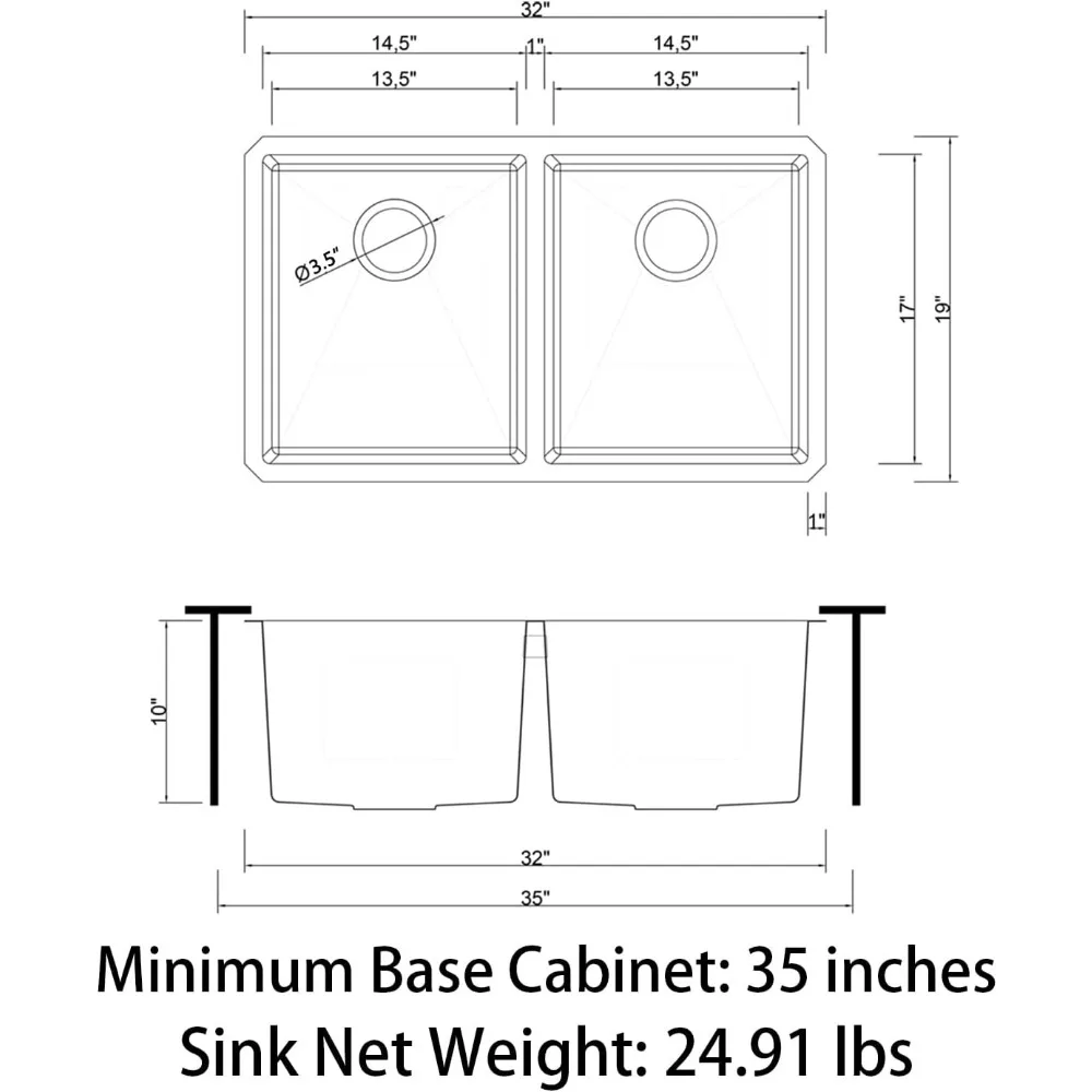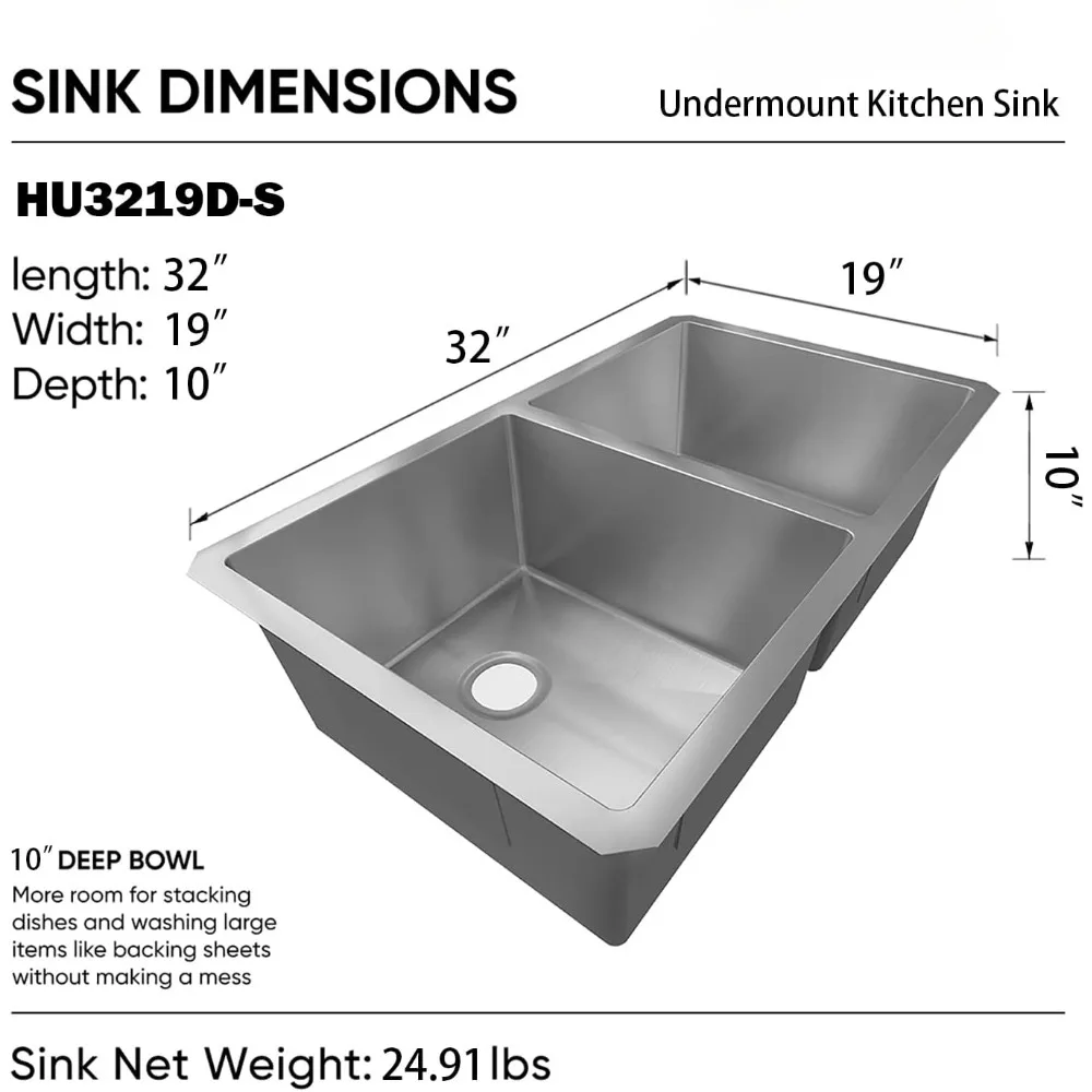 32" X 19" X 10" Undercounter Double Bowl Kitchen Sink