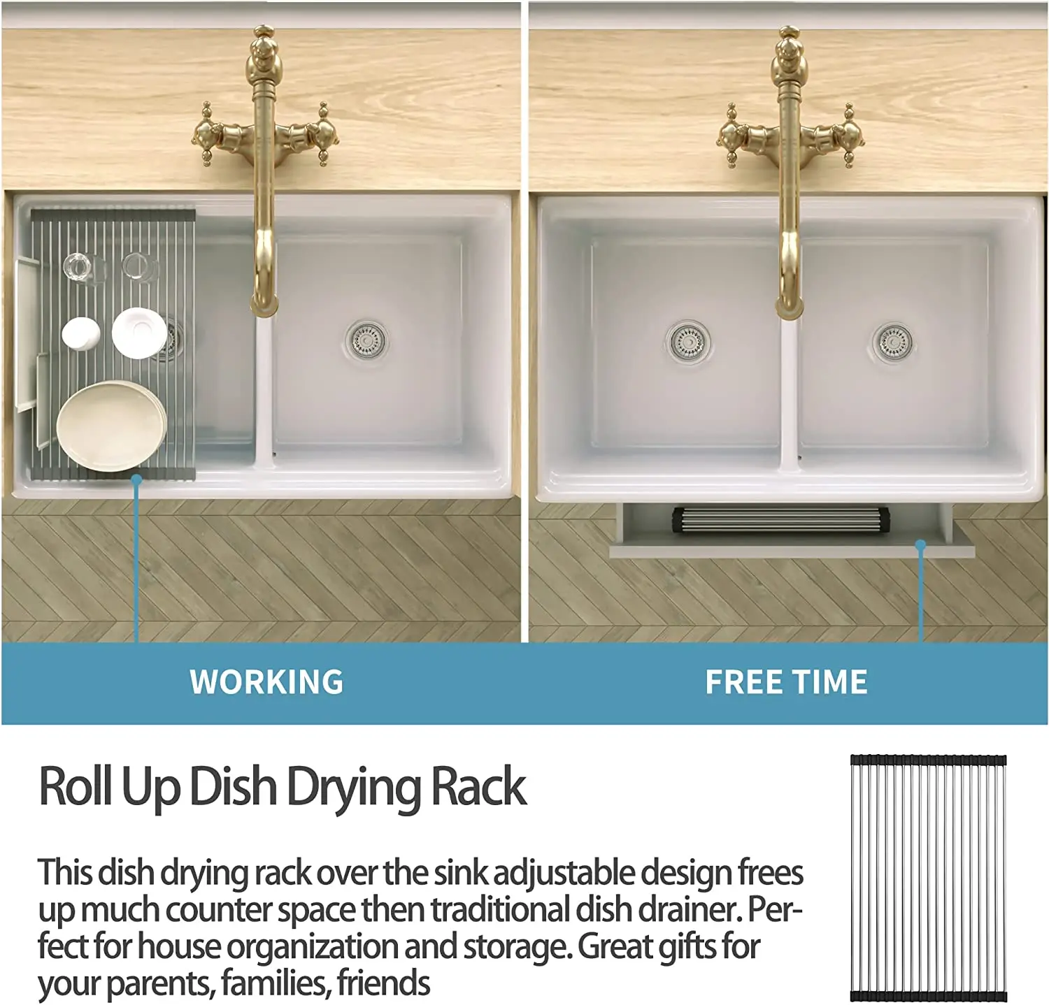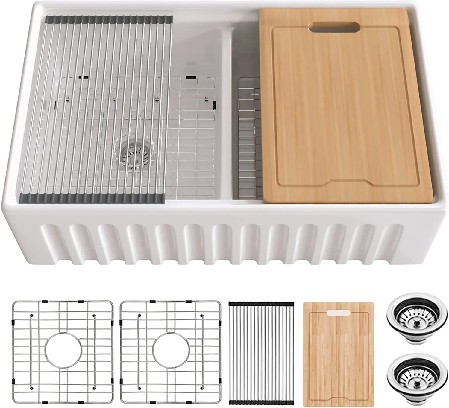 33 inch Double Farmhouse Sink White Hercate Ceramic Double Bowl