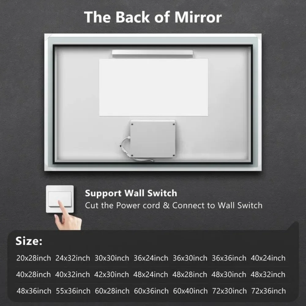 36 X 28 Inches LED Bathroom Mirror With Front and Backlit Anti-Fog