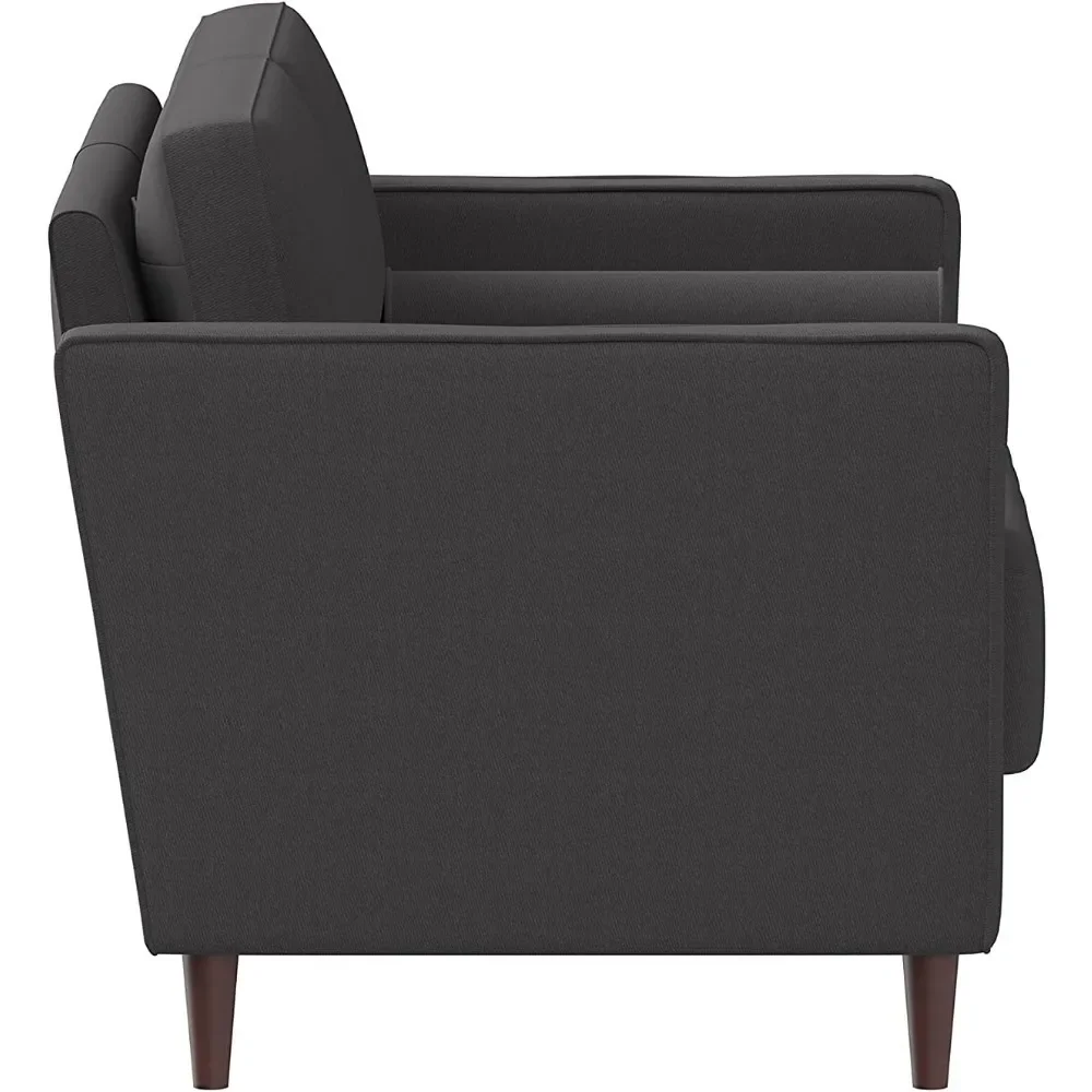 - BUILT TO LAST: Quality fabric and cozy cushions rest upon a solid hardwood frame and elegant, sturdy legs.
