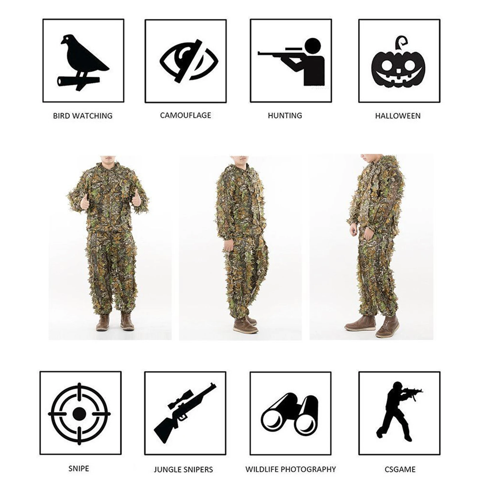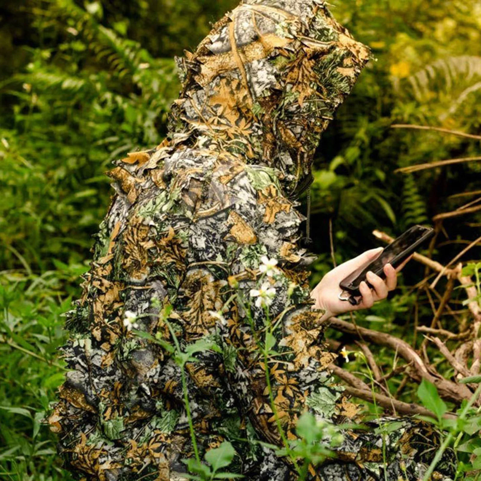 3D Leaves Ghillie Suit, Woodland Poncho Raincoat,