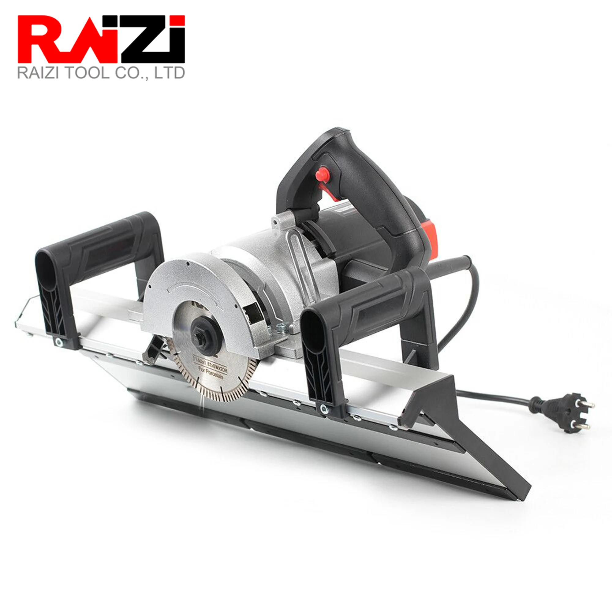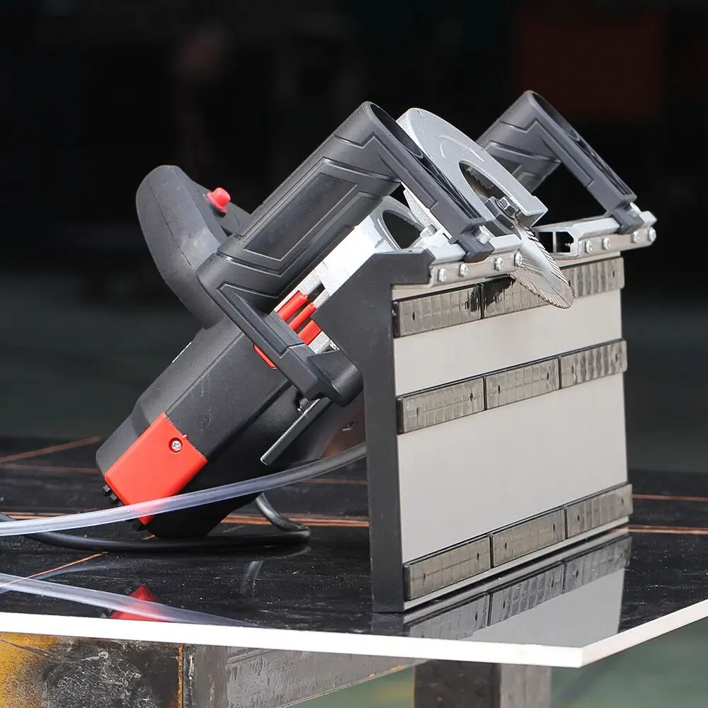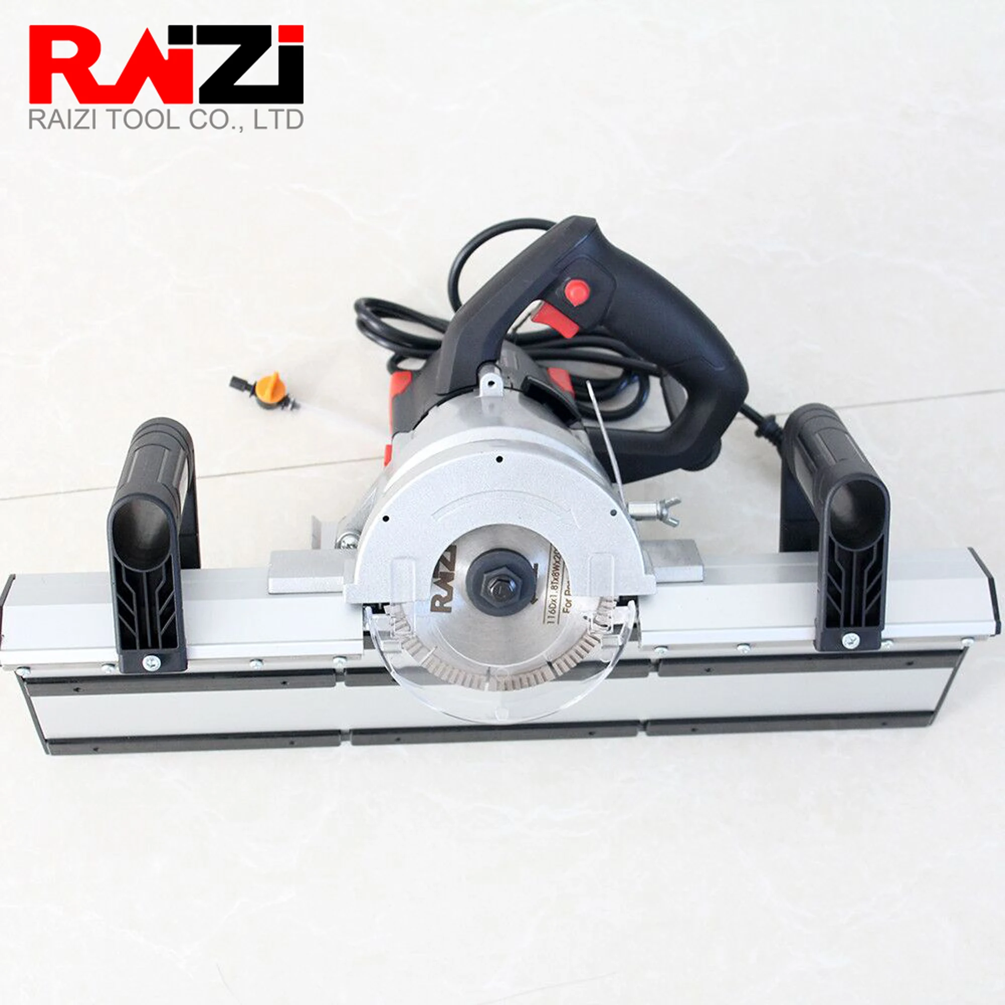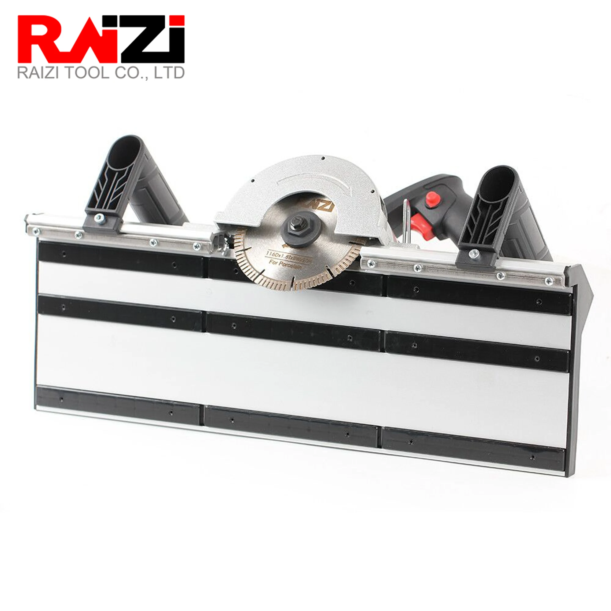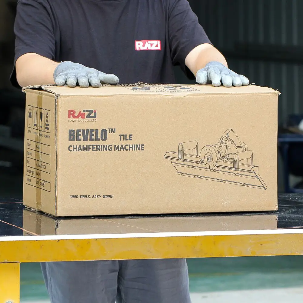 Raizi Bevelo is equipped with a 1200W power masonry saw and operates at a speed of 13000rpm, significantly enhancing cutting efficiency. The masonry saw is securely fixed onto the chamfering plate, ensuring impeccable stability. It comes in two versions: European plug and American plug, catering to different regional requirements.It comes with a 12V mini water pump and a 2.2-meter long water Pipe, allowing for water cutting and dust reduction on the usage environment, addressing dust handling concerns.The standard configuration includes a 116*20mm saw blade, with support for a maximum size of 130*20mm blades. However, it is recommended to use the standard size blade for stability.With a unique 43° innovative chamfering design, it allows for easy adjustment of the edge thickness with an adjustment range of 1-3mm. It is suitable for various tile sizes, including large-format tiles exceeding 2.2 meters in length.The chamfering plate is constructed from aerospace aluminum, offering high strength while remaining lightweight and easy to carry. Its bottom features POM high-strength engineering plastic sliders, ensuring smooth, wear-resistant operation without damaging the tile surface.With a dual-handle design, it provides flexibility for different needs, allowing for easy pulling and pushing.When paired with a dedicated chamfering stand, it can handle narrow and long strips as narrow as 3cm.