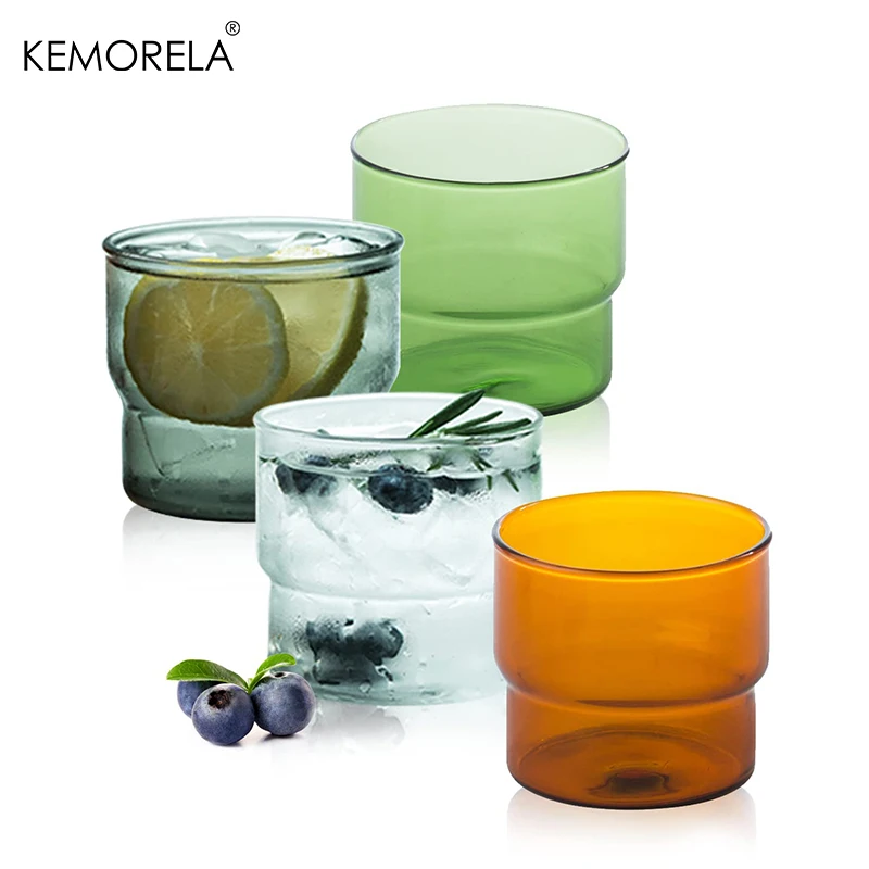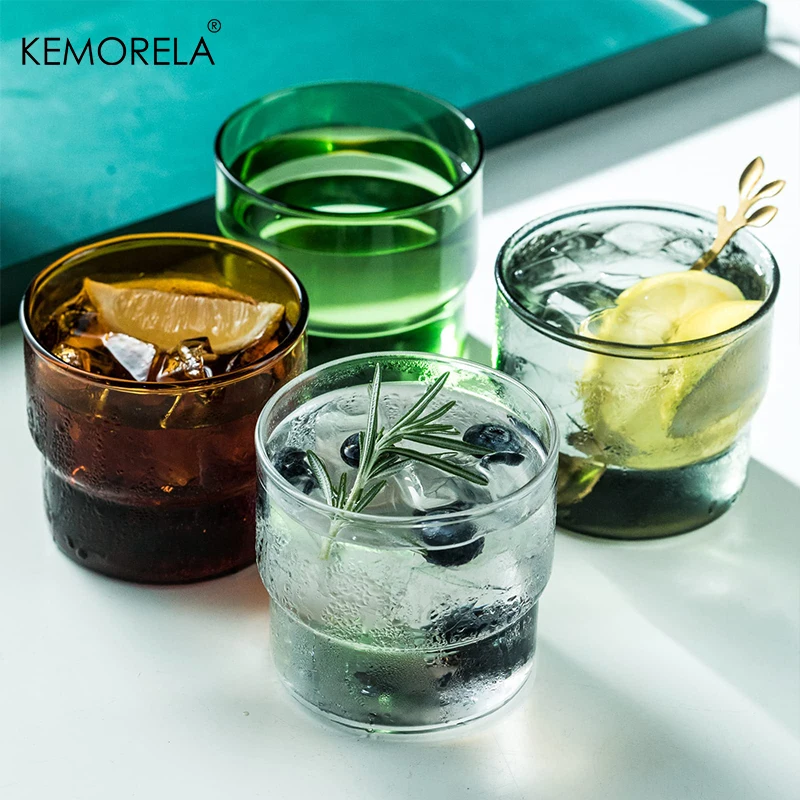 4PCS 300ml Glass Cup Coffee Mug Heat Resistant Drinkware Vintage Smoothie Shot Cups Transparent Glassware Wine Ice Beer Cup