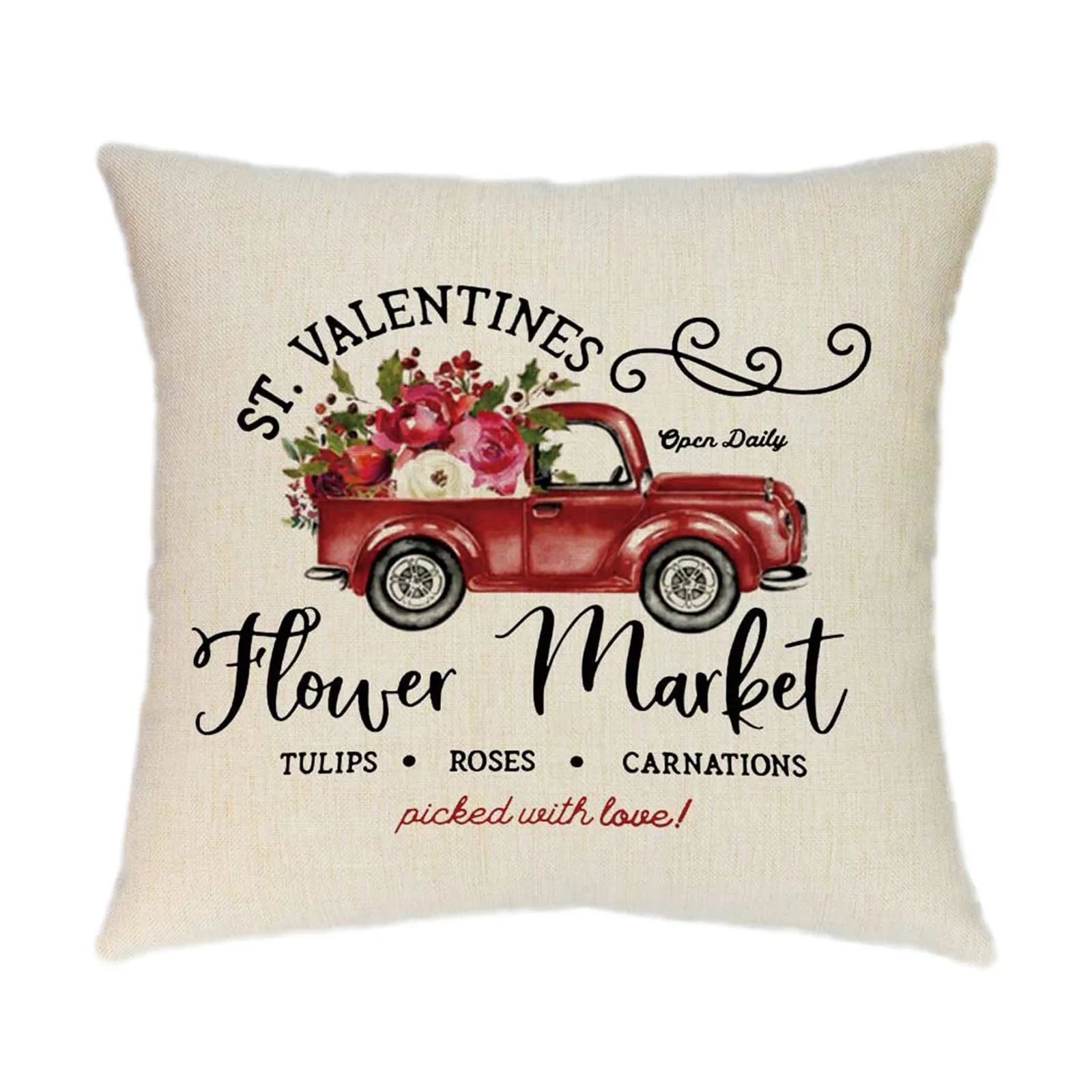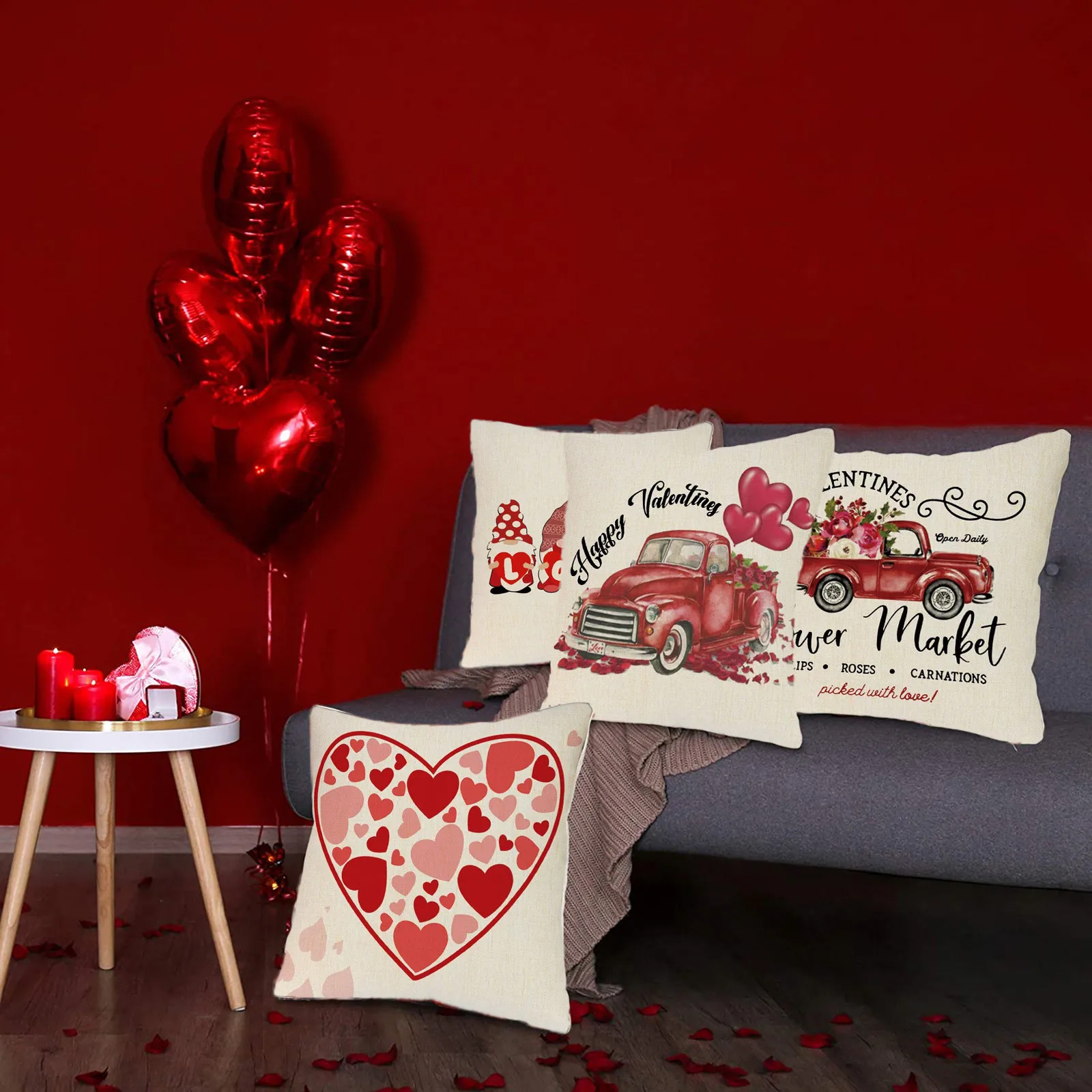 New 4PC Valentine's Day Cotton Linen Pillow Case Sofa Cushion Cover Home Decor