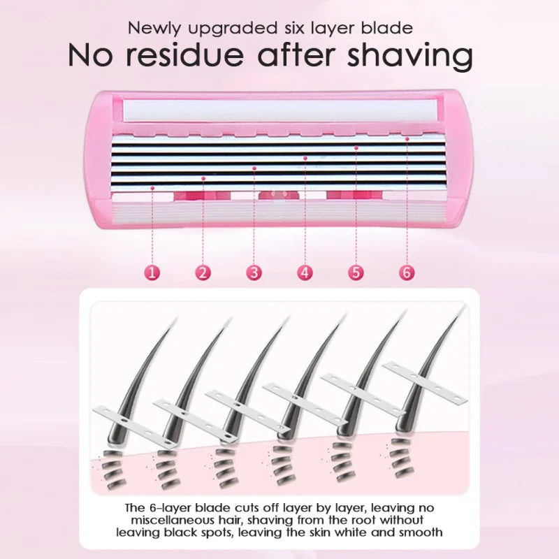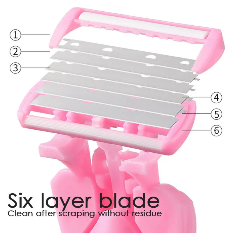 6 Layers Shaving Razors Non-Slip Plus 4 Refills Smooth