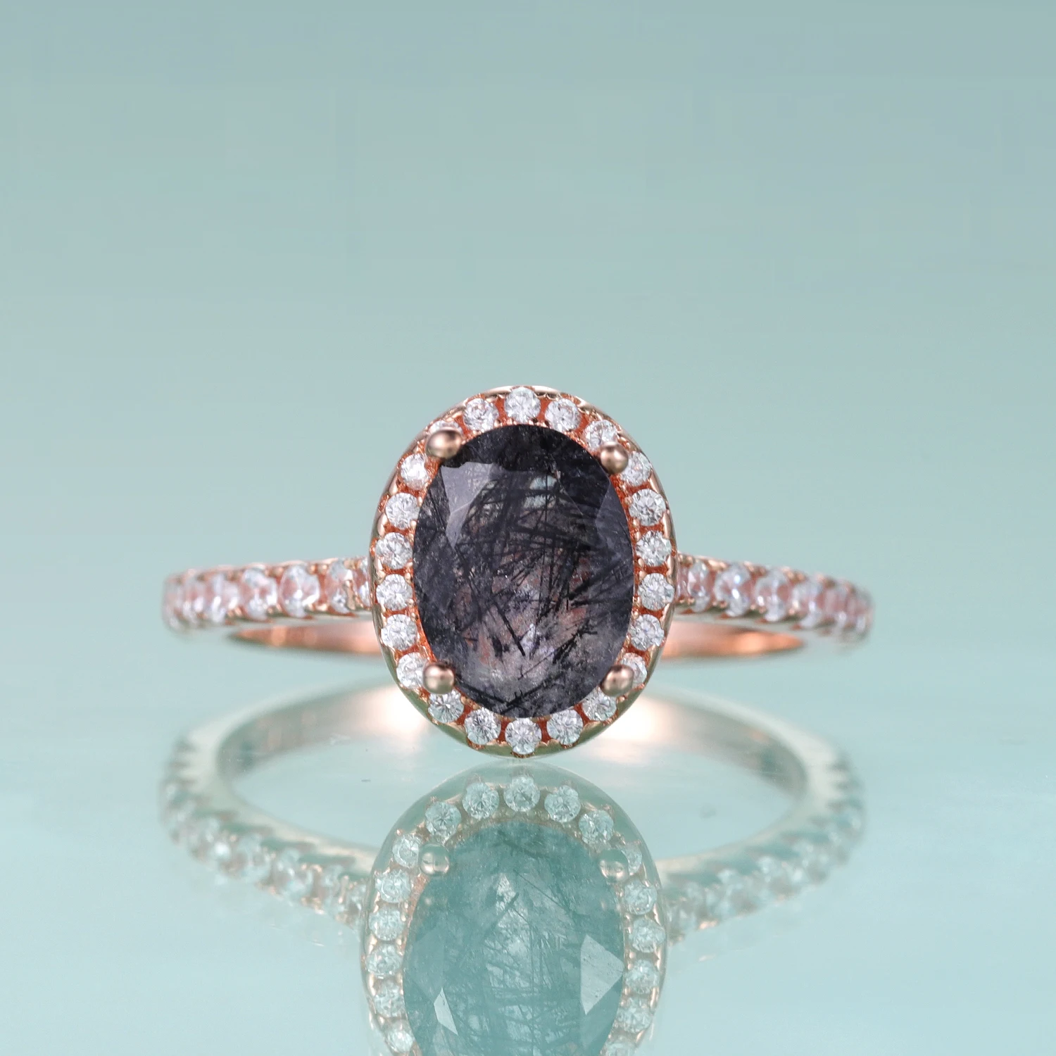 6X8mm Oval Natural Black Rutilated Quartz Gemstone Sterling Silver