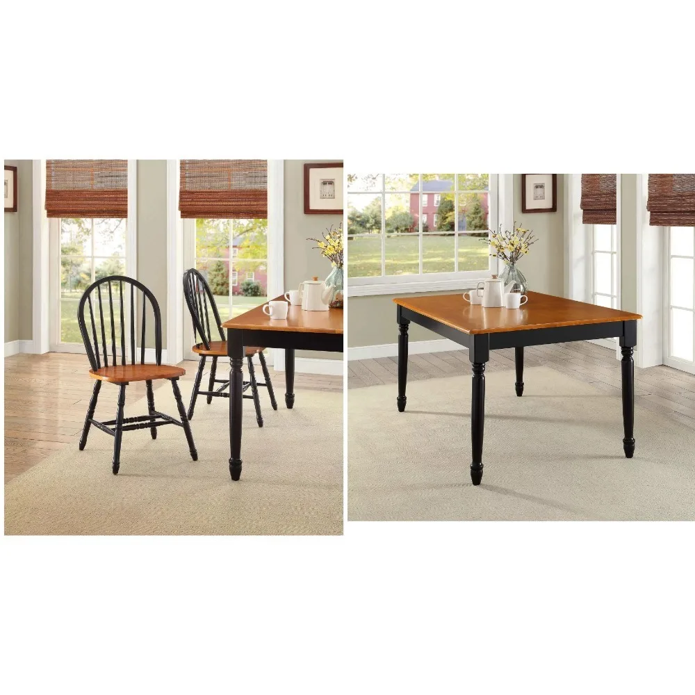 - The black and oak dining set has wood veneer top table