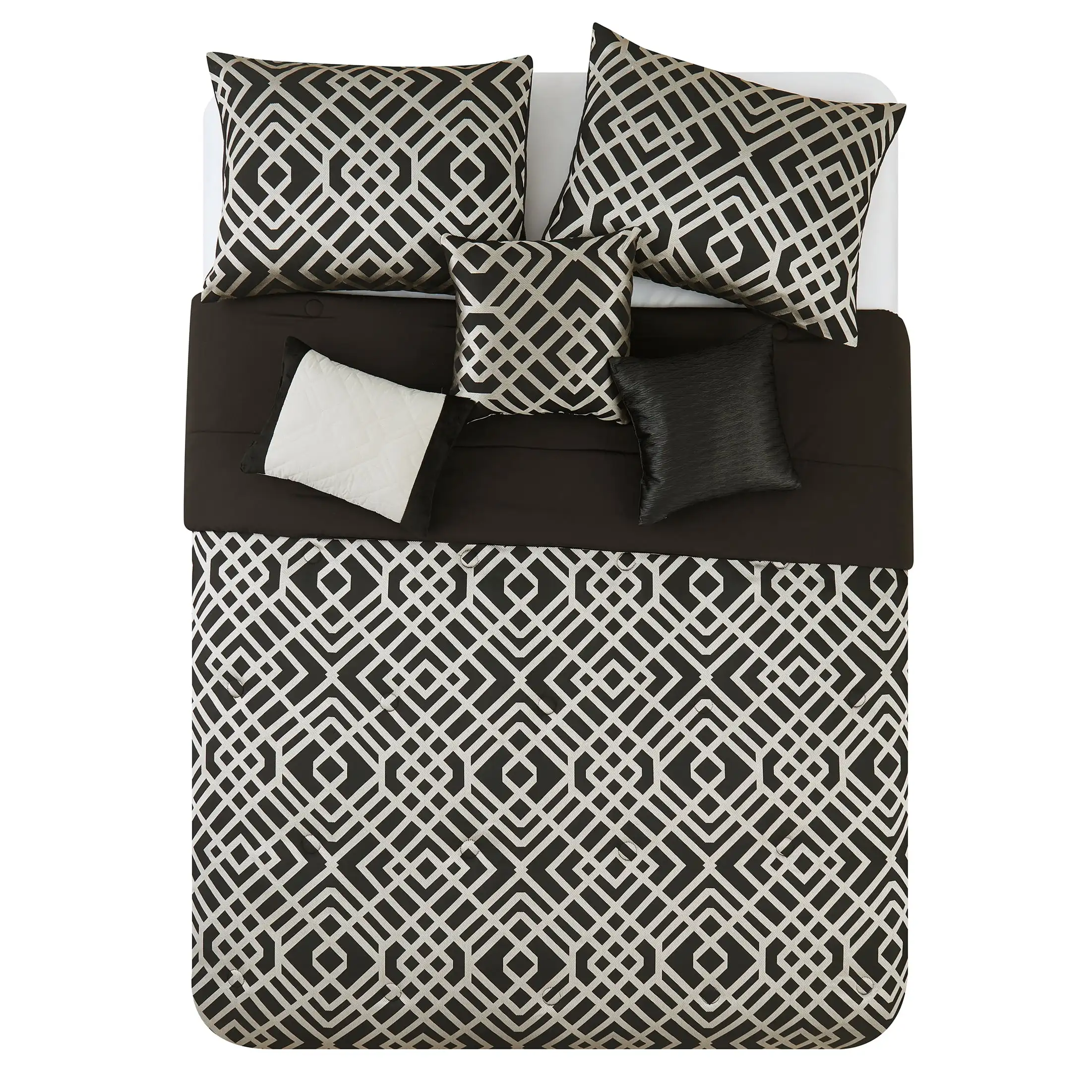 7-Piece Teal Stripe Jacquard Comforter Bedding Queen