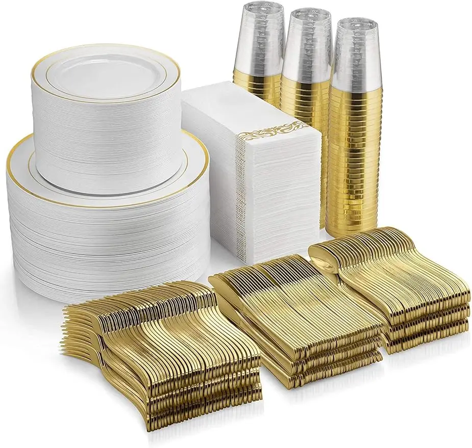 - Disposable Plastic Gold Silverware Set 100 Plastic Forks, 100 Plastic Spoons, 100 Plastic Knives |