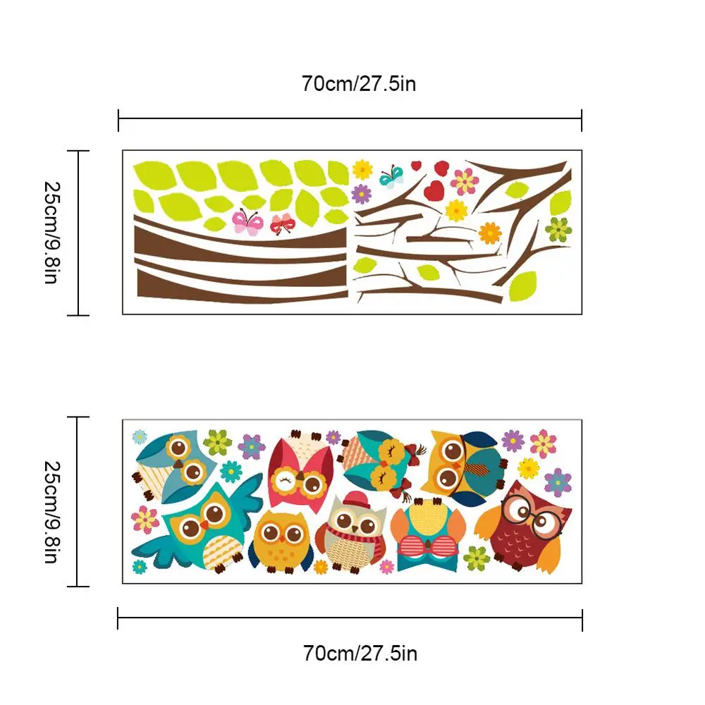 Adorable Cartoon Owl Branch Wall Decals for Kids Rooms