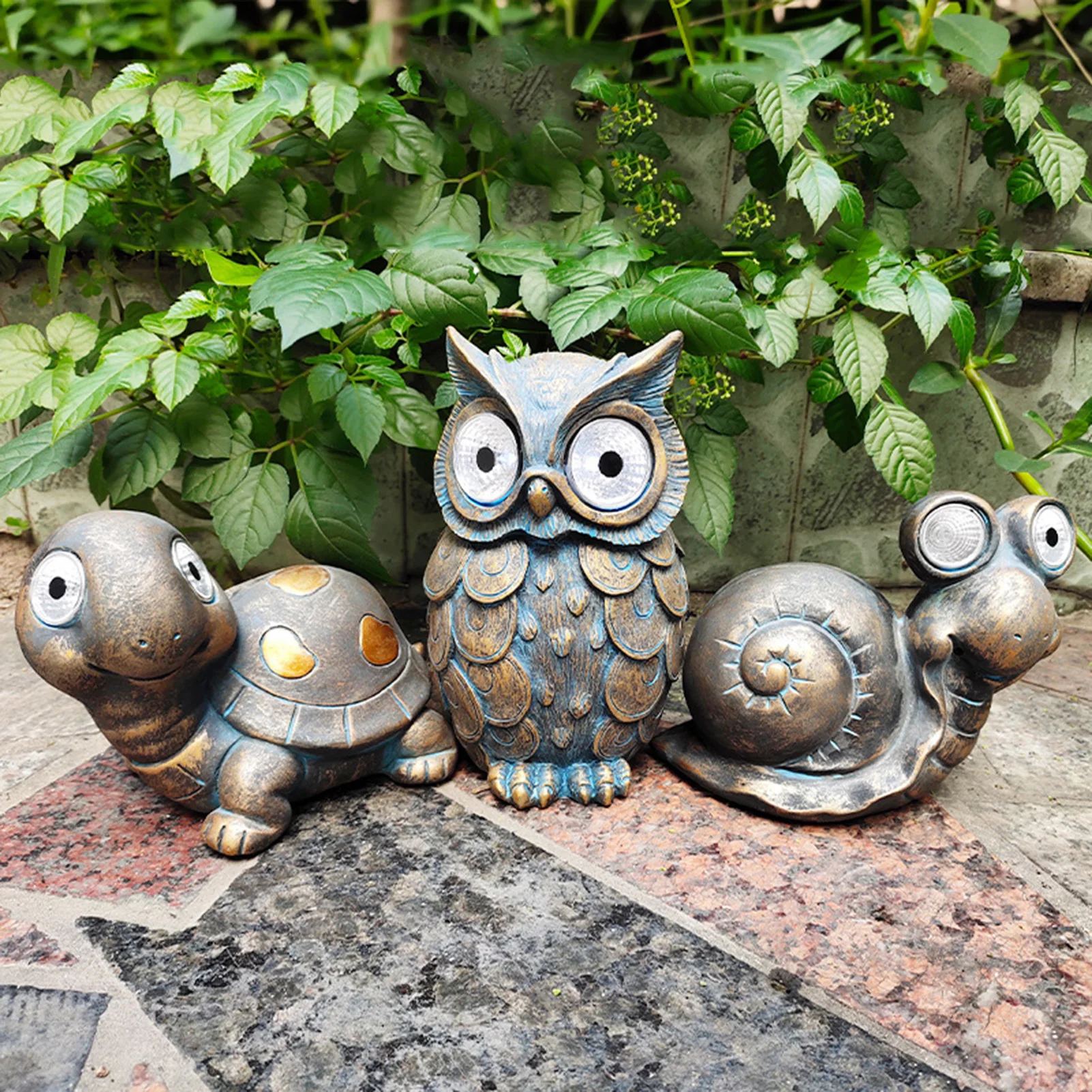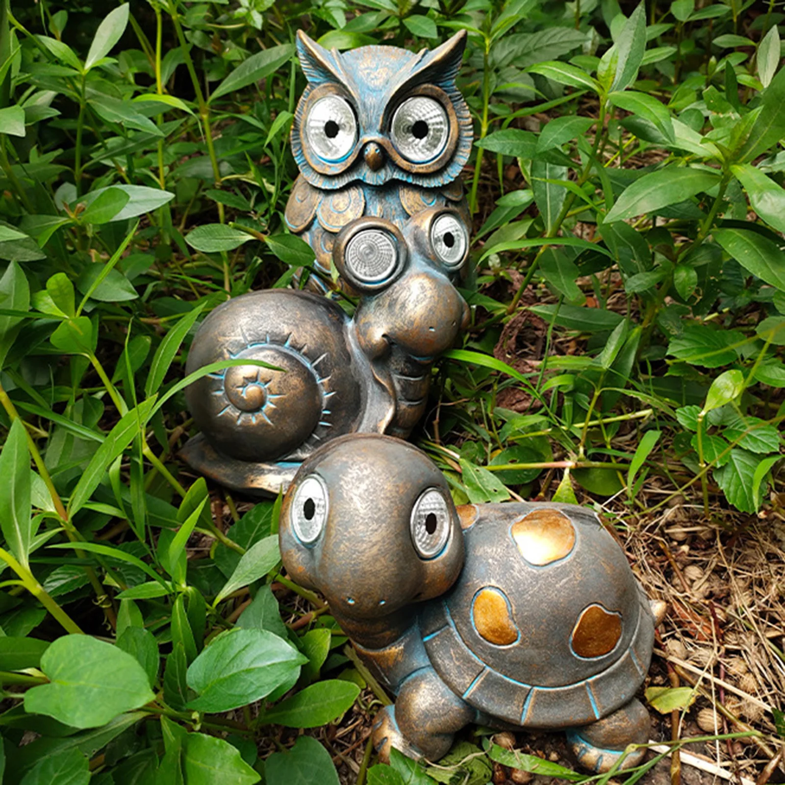 Animal Solar Powered Light Owl Snail Tortoise Statue