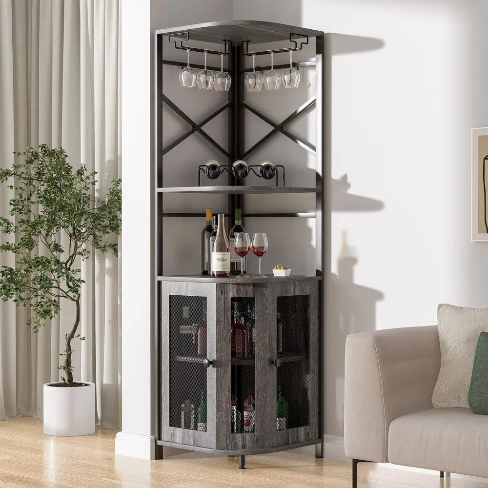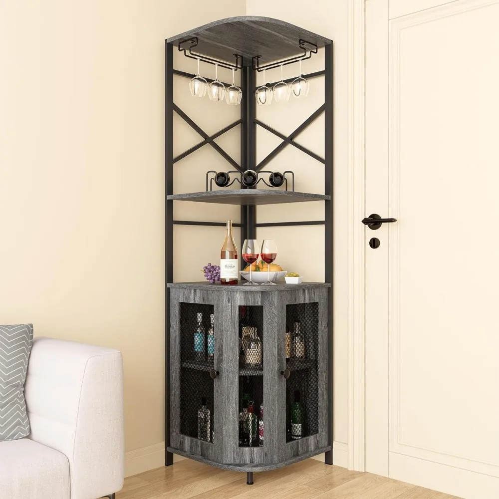 Bar Cabinet with Wine Rack and Glass Rack, Corner Cabinet