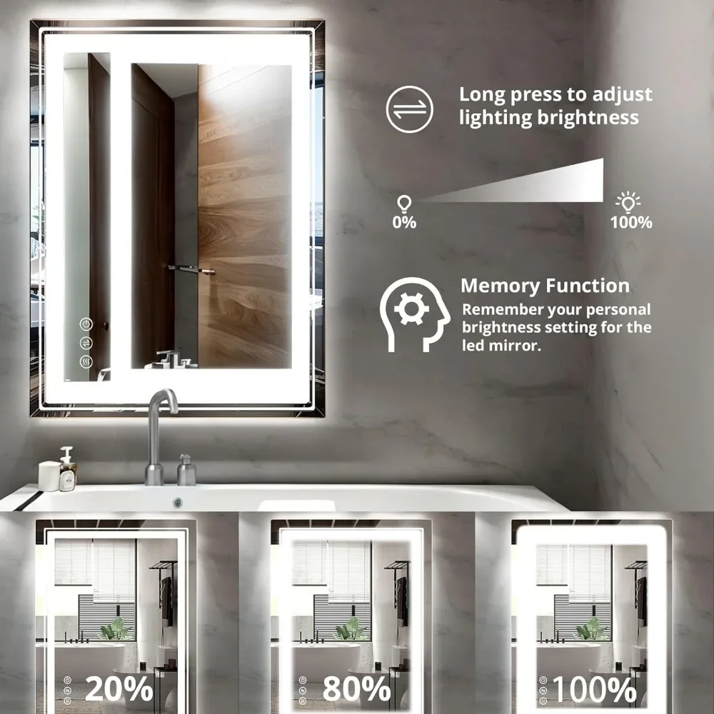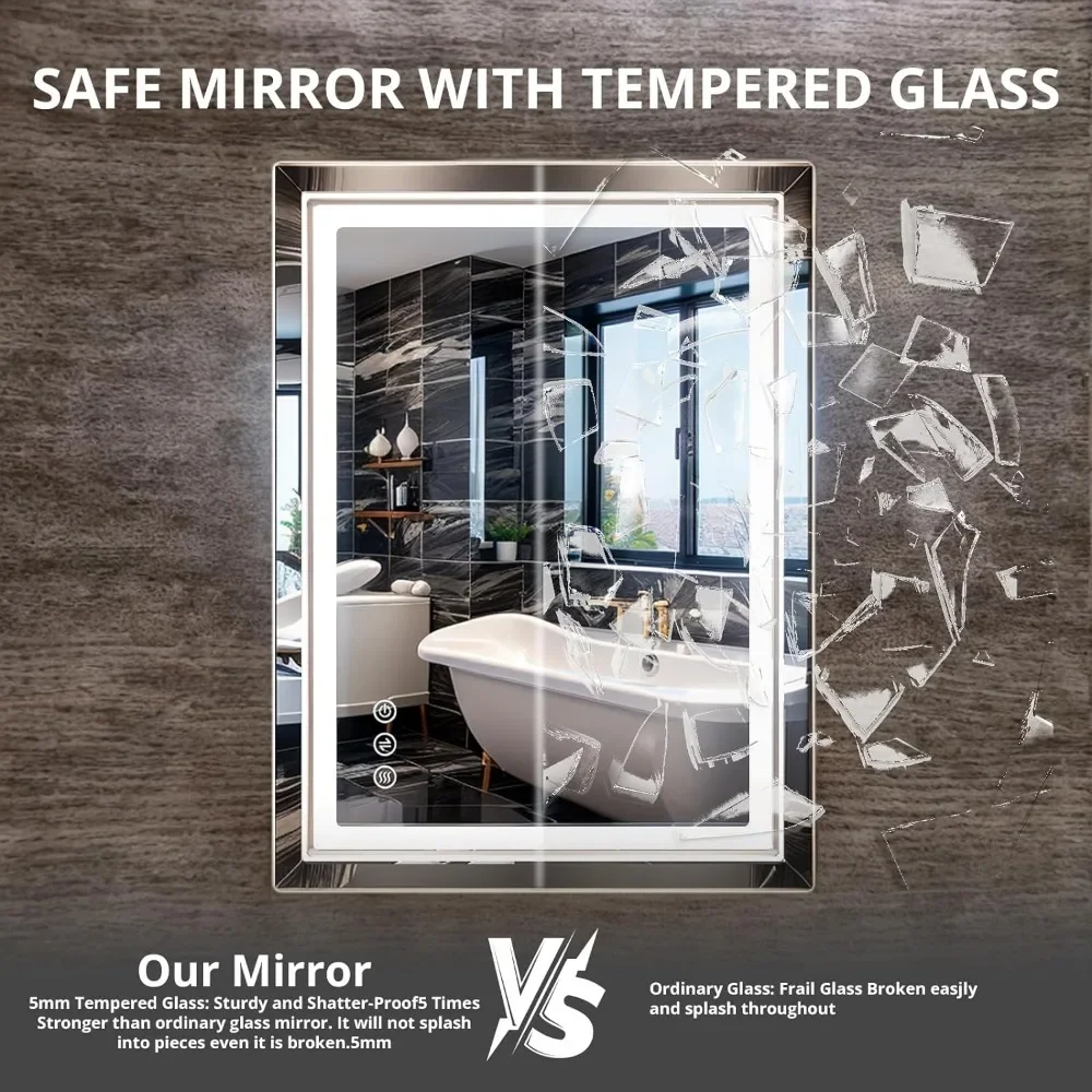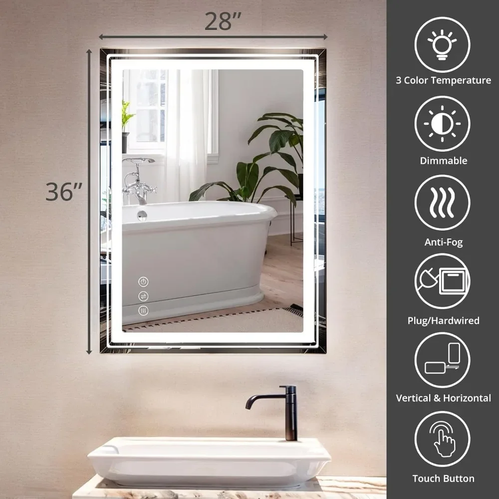 Bathroom Mirror with Lights 36x28 Inch Anti-Fog Shatter-Proof