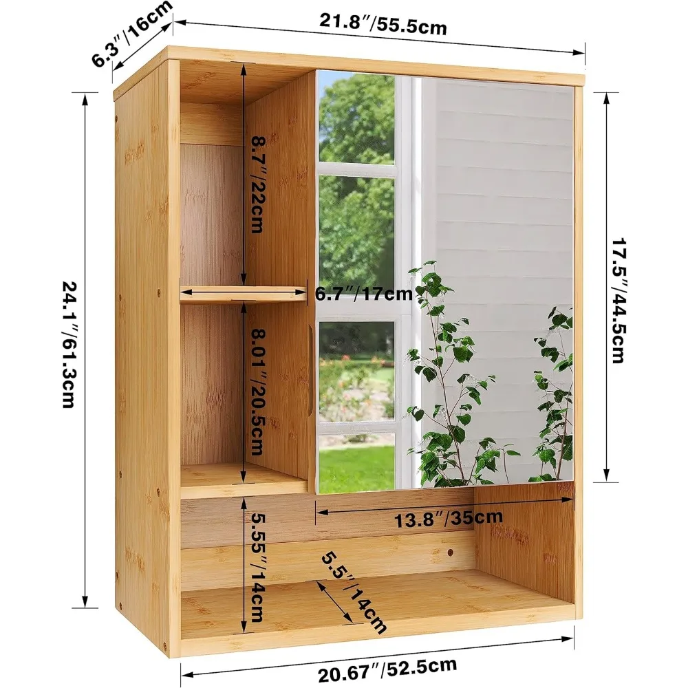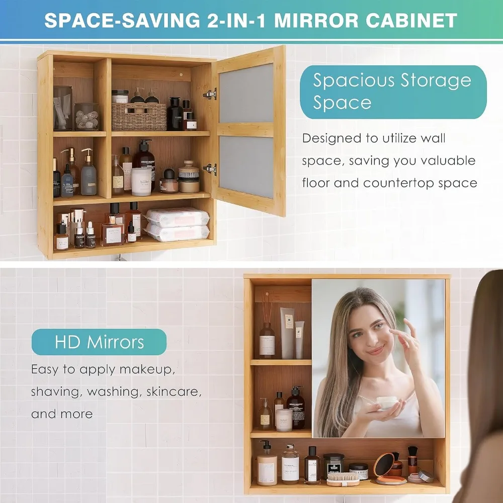 Bathroom, Space Saving Bamboo Medicine Cabinet Wall Mounted