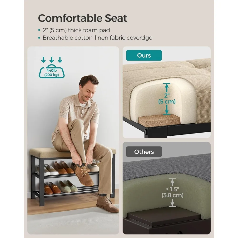 - [Cozy Sitting] With 2" thick foam padding and a breathable linen cover, this shoe bench offers maximum comfort when you sit on it to change your shoes