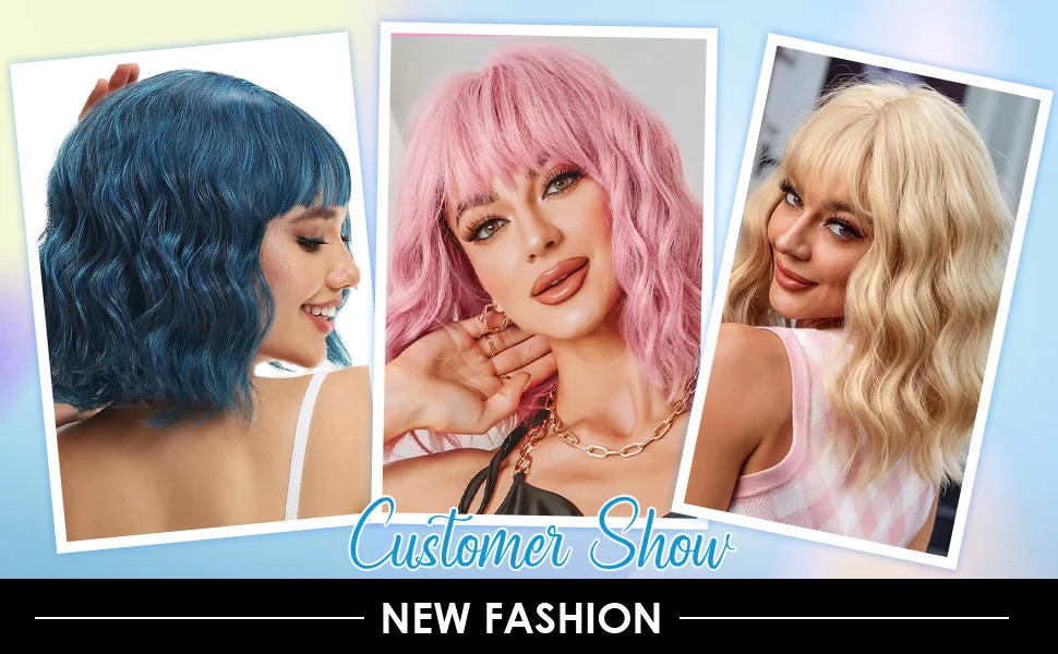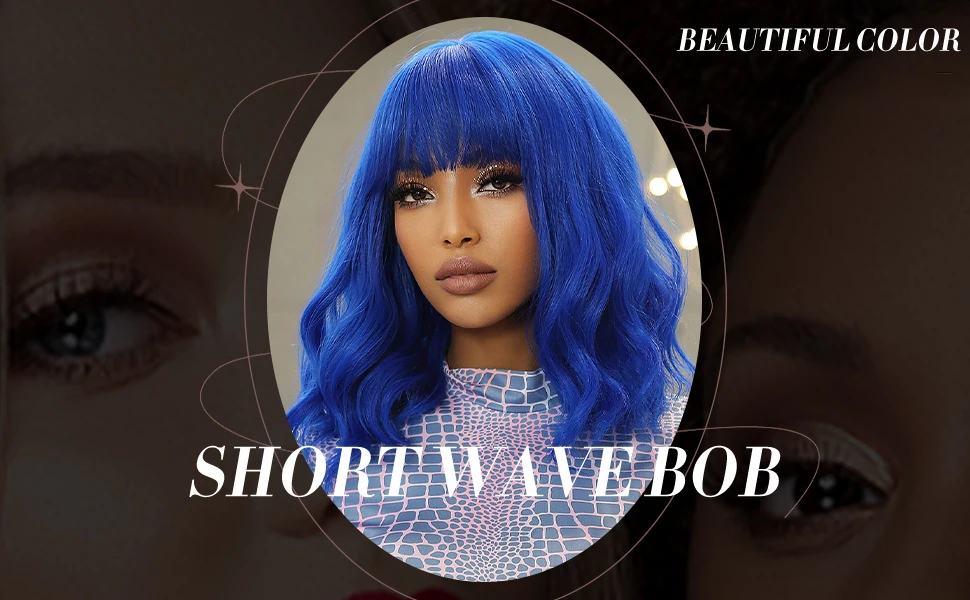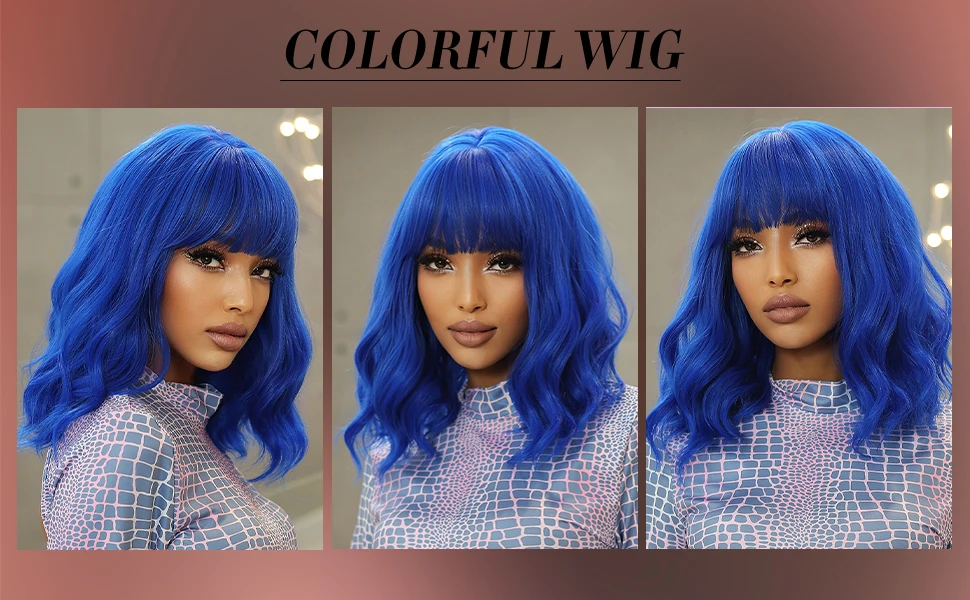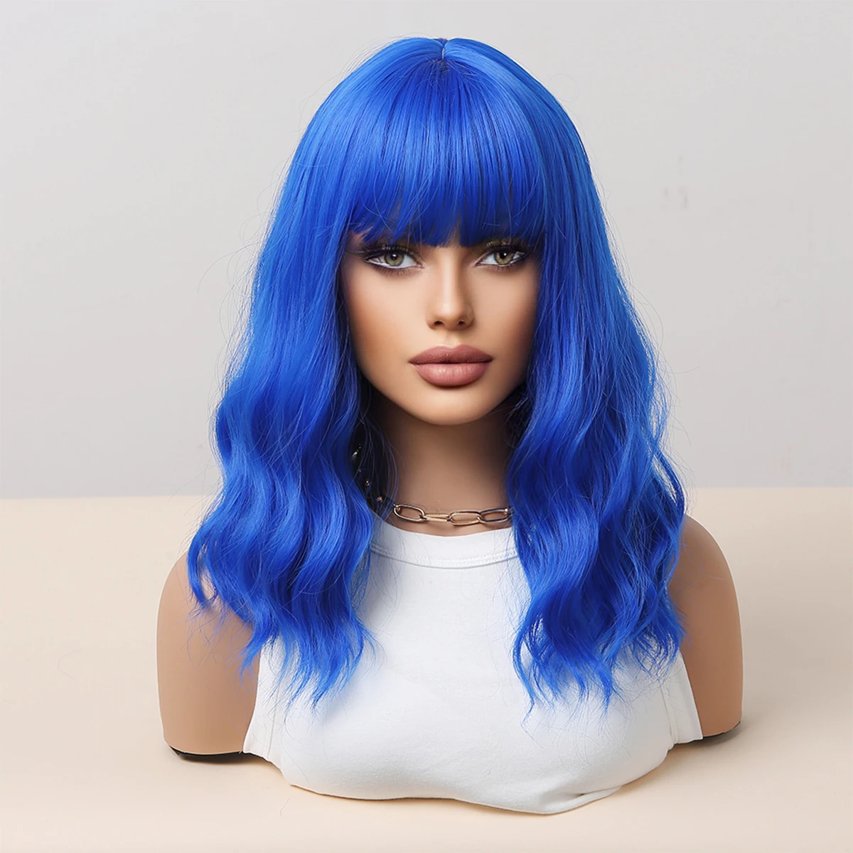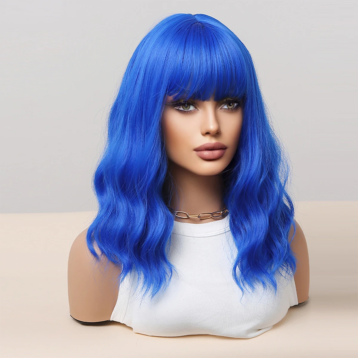 Hairstyle: Blue Synthetic Wigs With Bangs