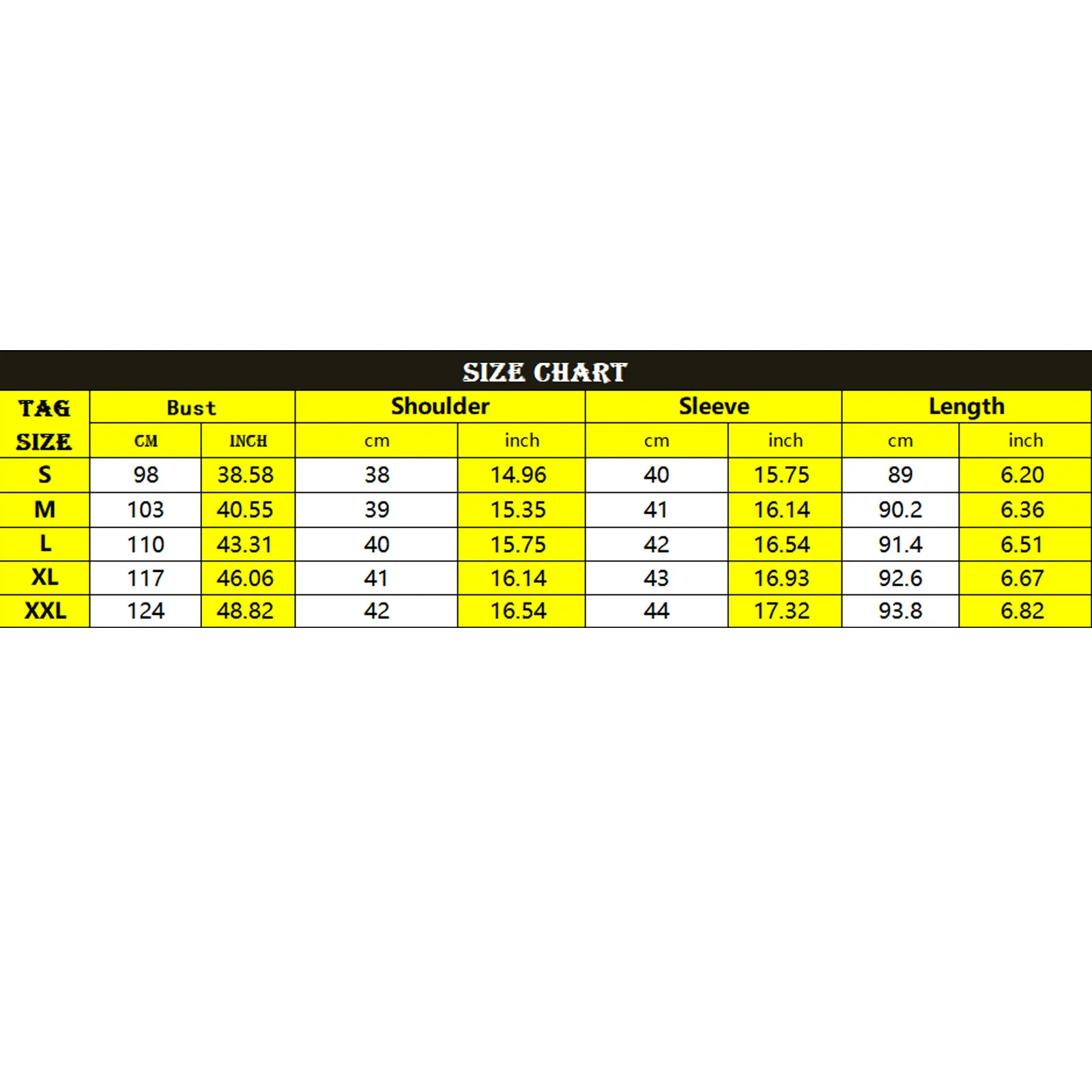| Size:XXL | Bust:124cm/48.82'' | Shoulder:42cm/16.54'' | Sleeve:43cm/16.93'' | Length:93.8cm/36.93'' |