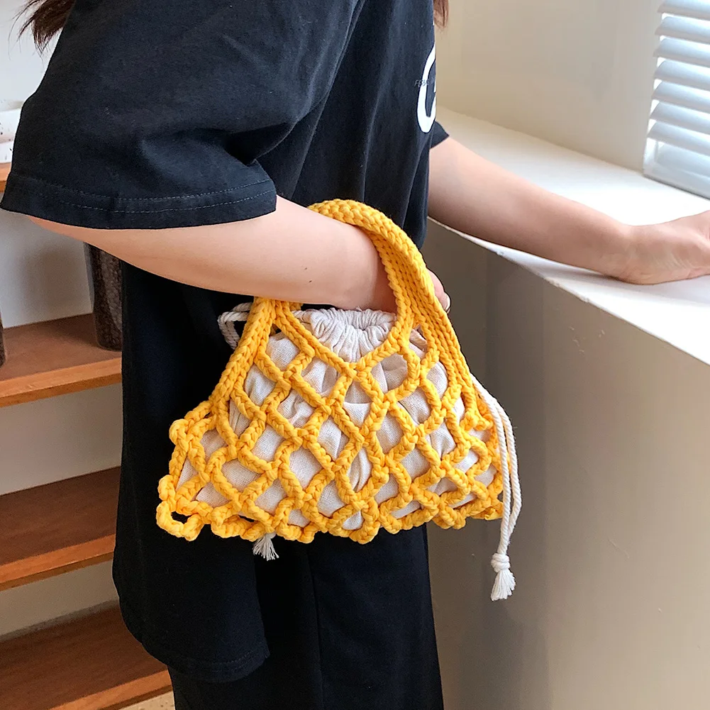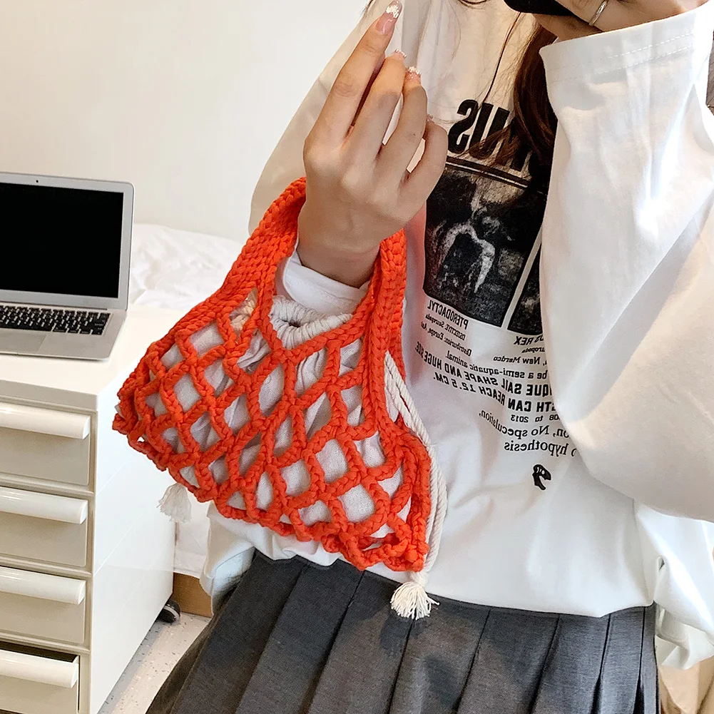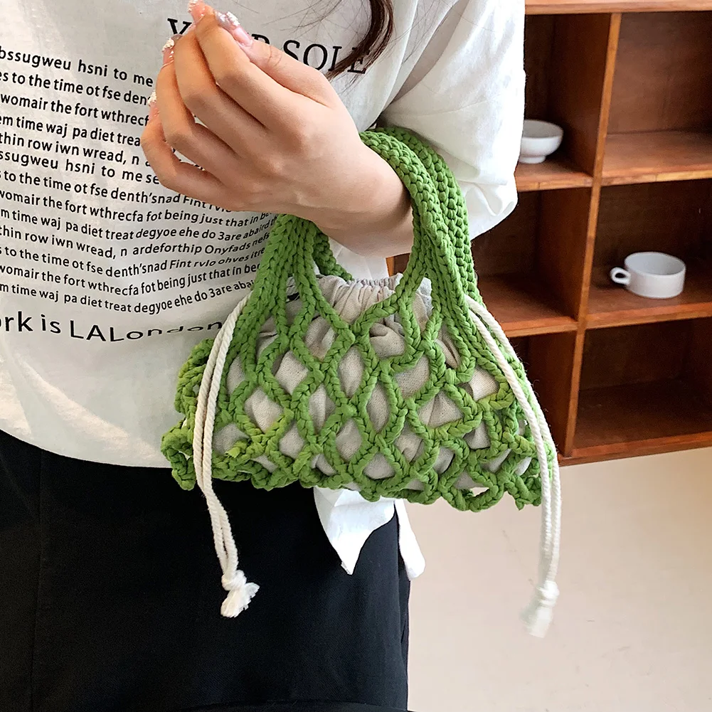 Boho Cotton Thread Wristlet Bag Summer Crochet Net Bag
