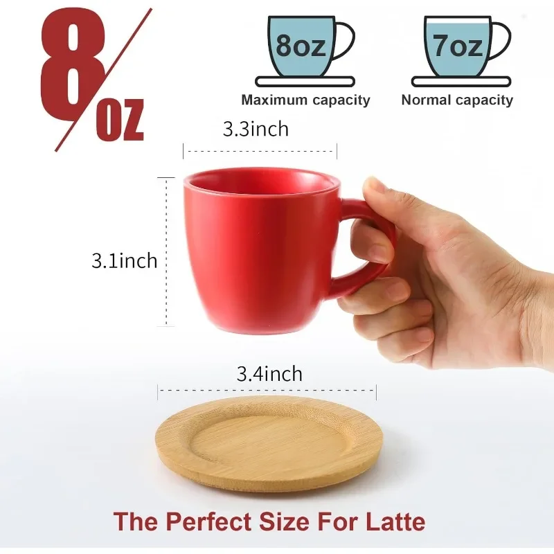Set of 6---8 Ounce Latte Cups And Saucers Set