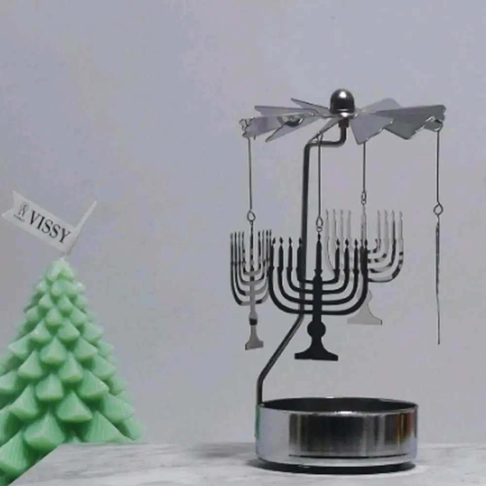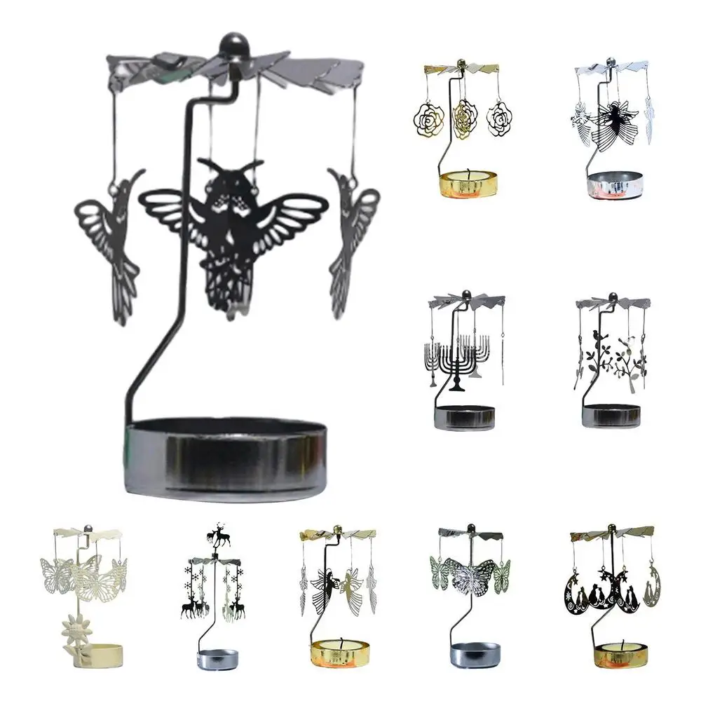 Candlesticks Rotating Romantic Rotation Spinning Carrousel Tea Light Candle Holder Christmas Home Party Table Decoration