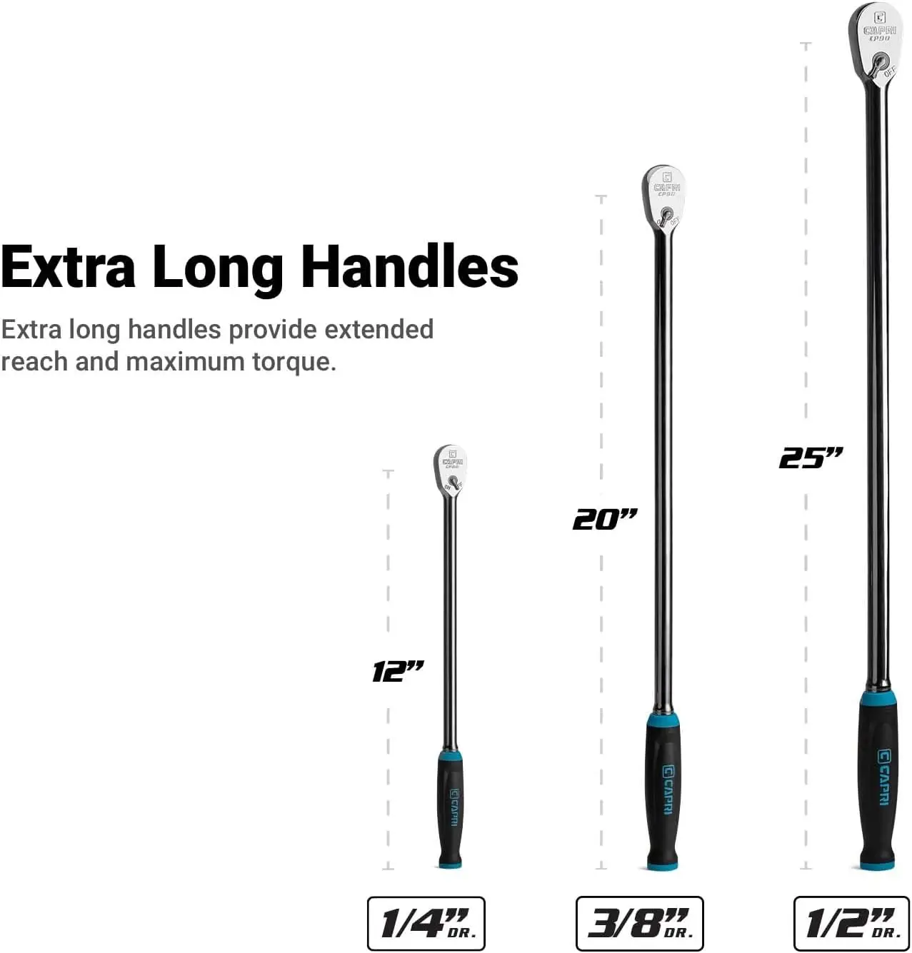 Capri Tools Fine 90-Tooth Extra Long Ratchet Set 1/4, 3/8, 1/2 in. 3-Piece