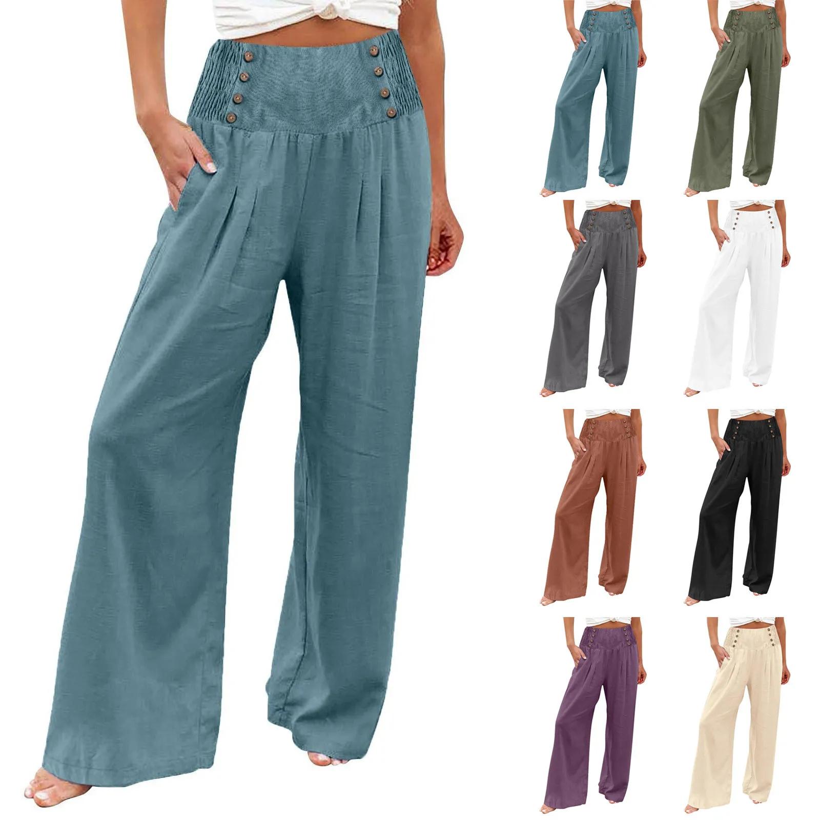 Casual Elastic High Waisted Pants Womens