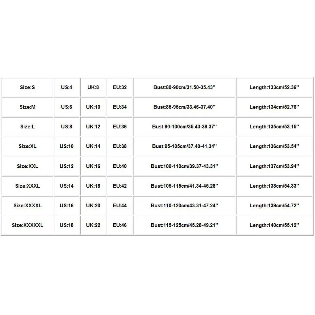 | Size:XXXL | US:18 | UK:22 | EU:46 | Bust:115-125cm/45.28-49.21'' | Length:140cm/55.12'' |