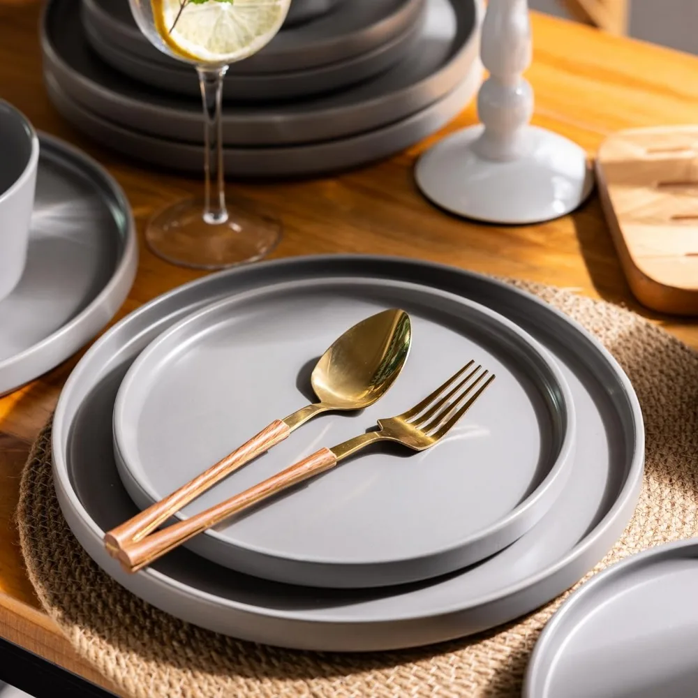 Ceramic Dinnerware Sets of 4, Modern Flat Stoneware
